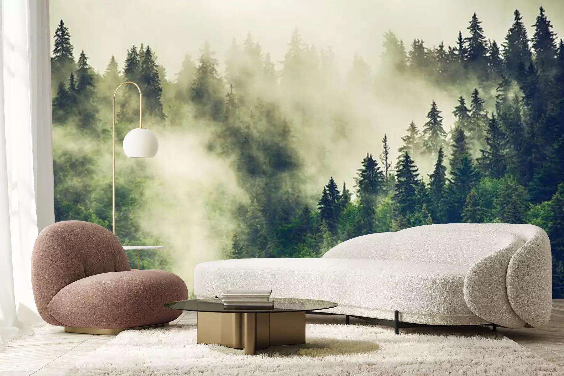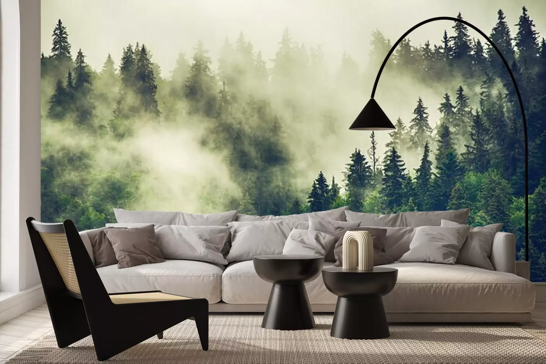 Een sparrenbos gehuld in ochtendmistProbleemloze bezorging verzorgd door vertrouwde vervoerders
