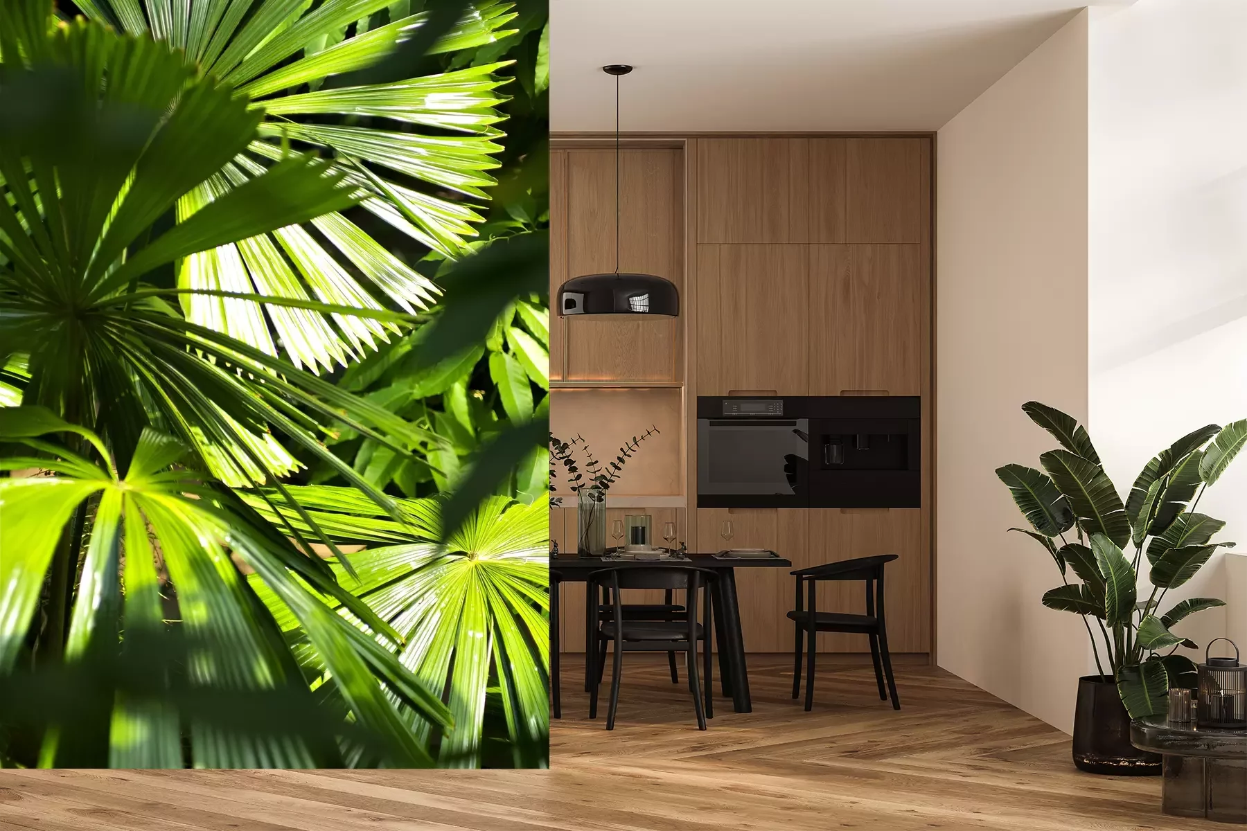 Het materiaal Premium+ is een gestructureerd vinyl op vlies met een gewicht van 255 g/m², dat kleine oneffenheden in de muur effectief camoufleert. De subtiele structuur van fijn zand geeft het oppervlak een exclusieve uitstraling, terwijl de halfmatte afwerking de diepte van de kleuren benadrukt. Het materiaal is dampdoorlatend, waardoor het ook in de keuken en badkamer kan worden gebruikt. De maximale breedte van één baan bedraagt 100 cm – bij grotere afmetingen wordt het fotobehang in meerdere gelijke banen verdeeld. De lijm wordt direct op de muur aangebracht en het behang wordt rand-aan-rand geplakt, wat zorgt voor een esthetisch resultaat zonder zichtbare naden. Het oppervlak kan gemakkelijk worden schoongemaakt door het voorzichtig af te nemen met een vochtige doek.
