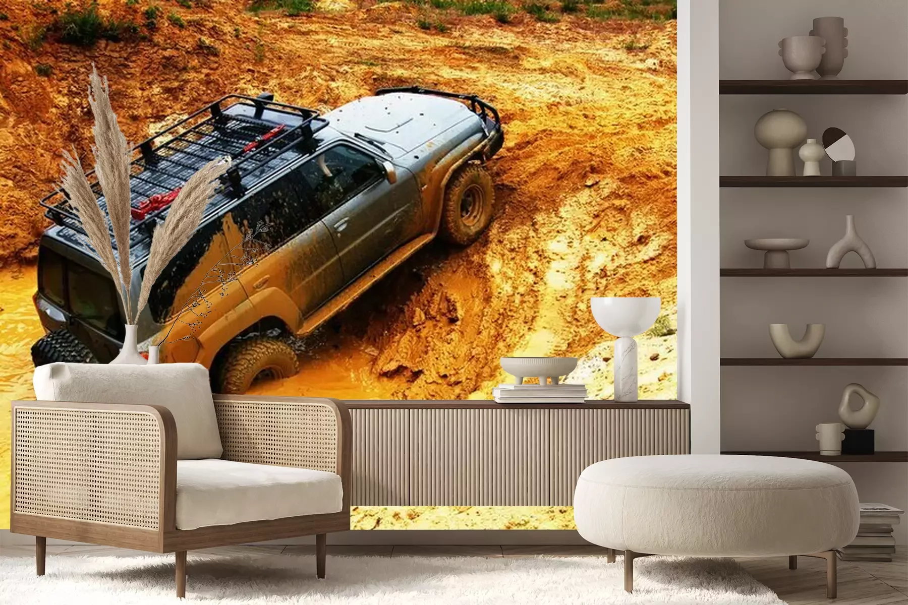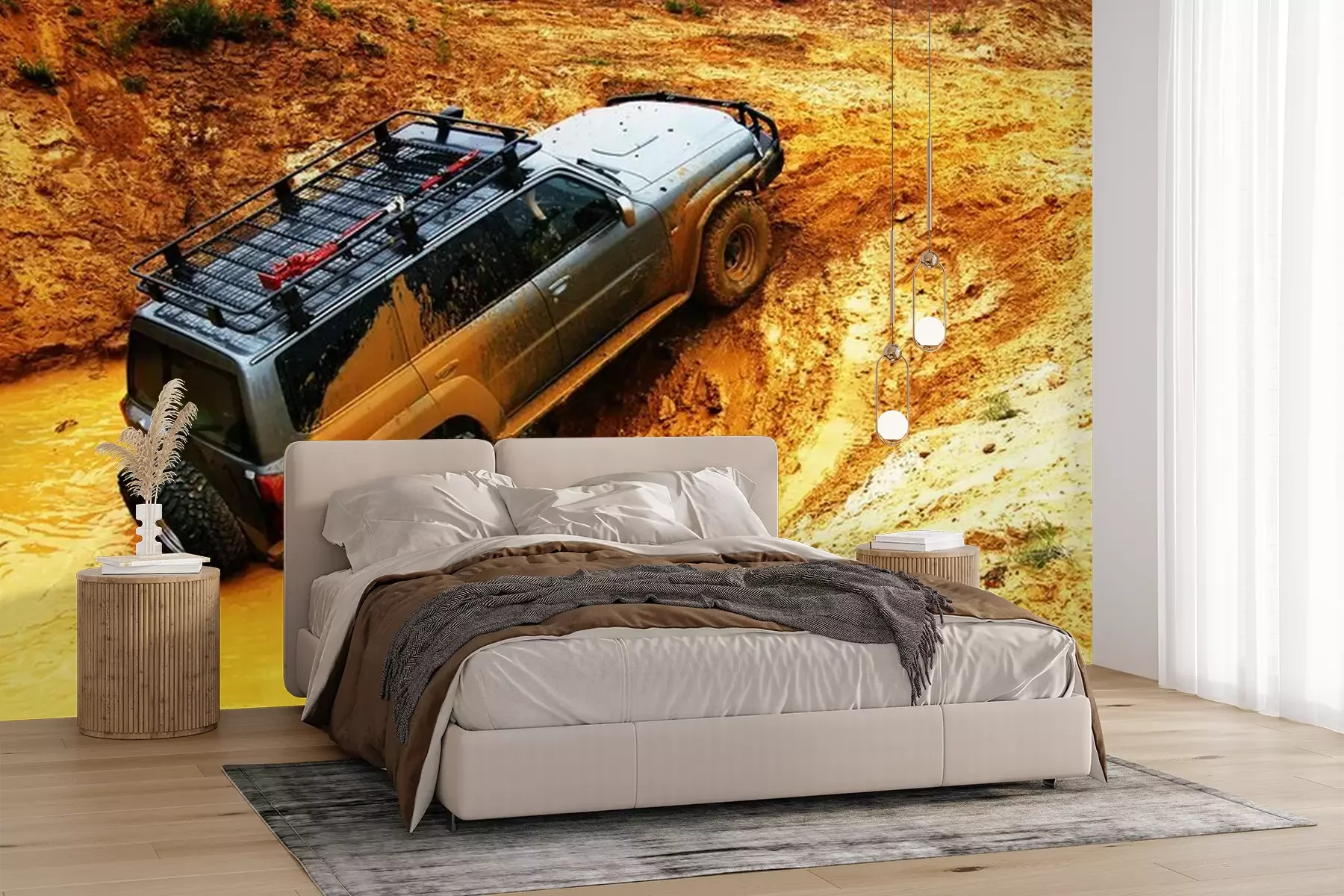 Het materiaal Premium+ is een gestructureerd vinyl op vlies met een gewicht van 255 g/m², dat kleine oneffenheden in de muur effectief camoufleert. De subtiele structuur van fijn zand geeft het oppervlak een exclusieve uitstraling, terwijl de halfmatte afwerking de diepte van de kleuren benadrukt. Het materiaal is dampdoorlatend, waardoor het ook in de keuken en badkamer kan worden gebruikt. De maximale breedte van één baan bedraagt 100 cm – bij grotere afmetingen wordt het fotobehang in meerdere gelijke banen verdeeld. De lijm wordt direct op de muur aangebracht en het behang wordt rand-aan-rand geplakt, wat zorgt voor een esthetisch resultaat zonder zichtbare naden. Het oppervlak kan gemakkelijk worden schoongemaakt door het voorzichtig af te nemen met een vochtige doek.