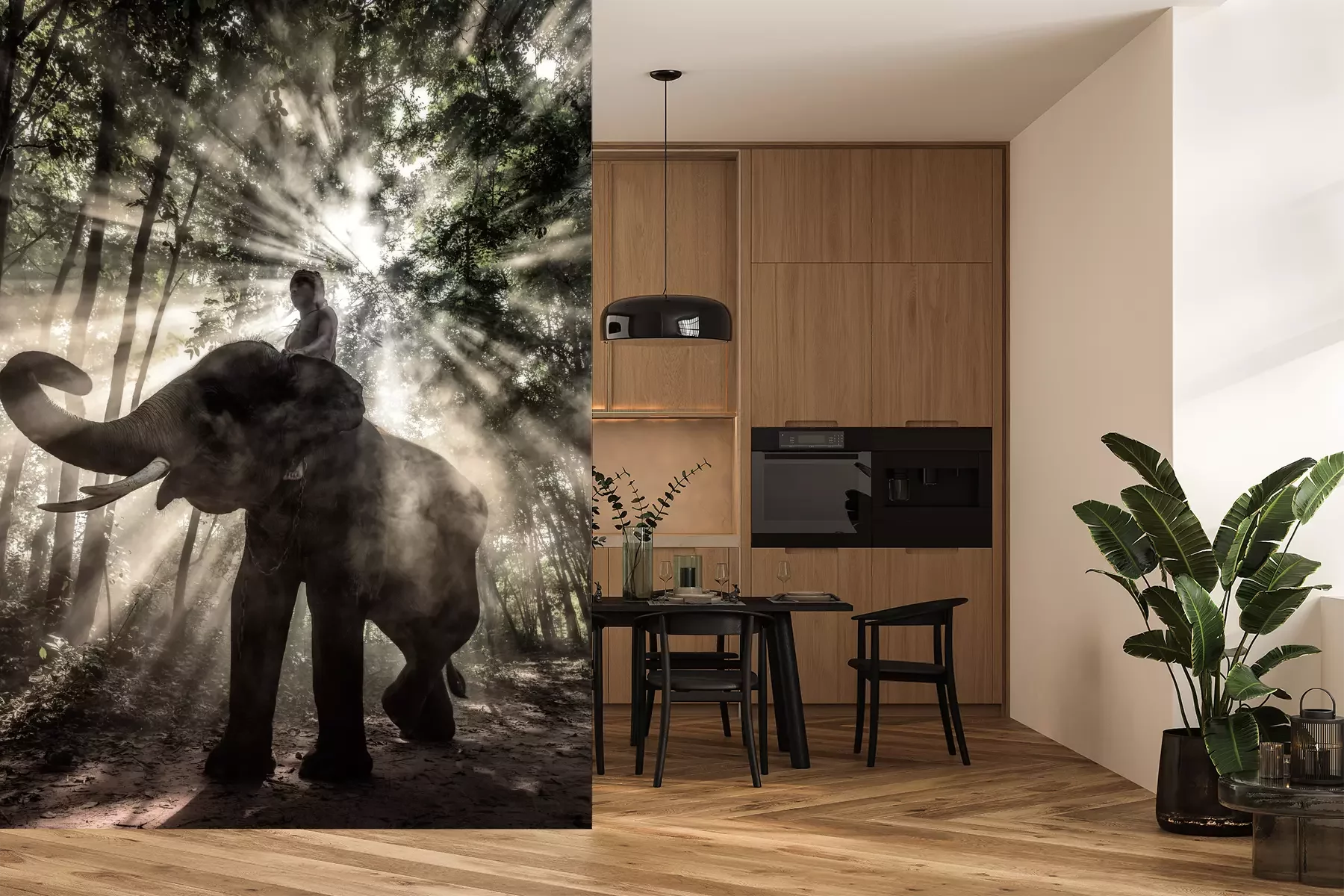 Het materiaal Premium is een glad vinyl op vlies, dat bestand is tegen uitrekken en vervorming. Het is dampdoorlatend – de muren kunnen vrij ademen – waardoor het geschikt is voor gebruik in de keuken en badkamer. Bij vervuiling kan het materiaal worden afgenomen met een vochtige doek. De maximale breedte van één baan bedraagt 95 of 105 cm, afhankelijk van de beschikbaarheid. Montage vindt plaats met de rand-aan-rand methode, wat een esthetisch resultaat zonder zichtbare naden oplevert. Omdat de lijm rechtstreeks op de muur wordt aangebracht, verloopt de installatie van het fotobehang snel en eenvoudig.
