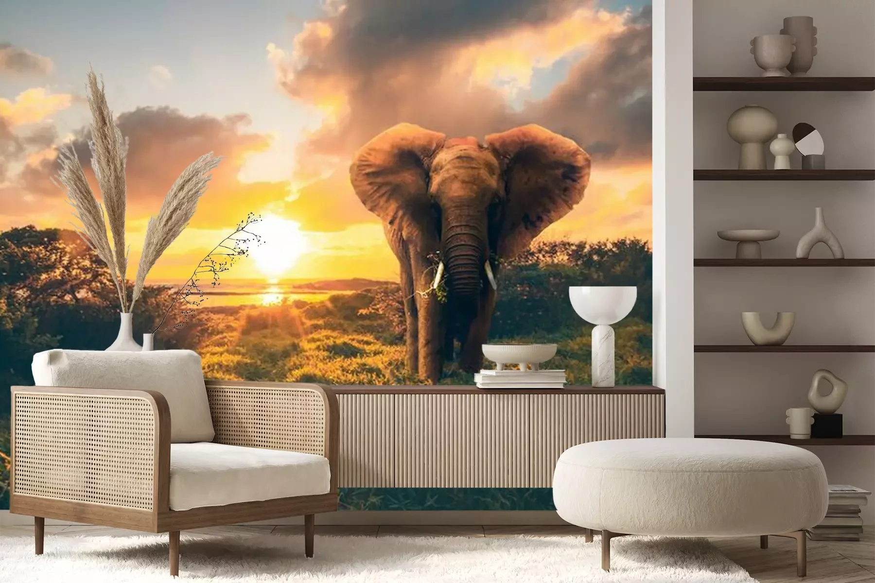 Fotobehang Olifant op de achtergrond van de ondergaande zon