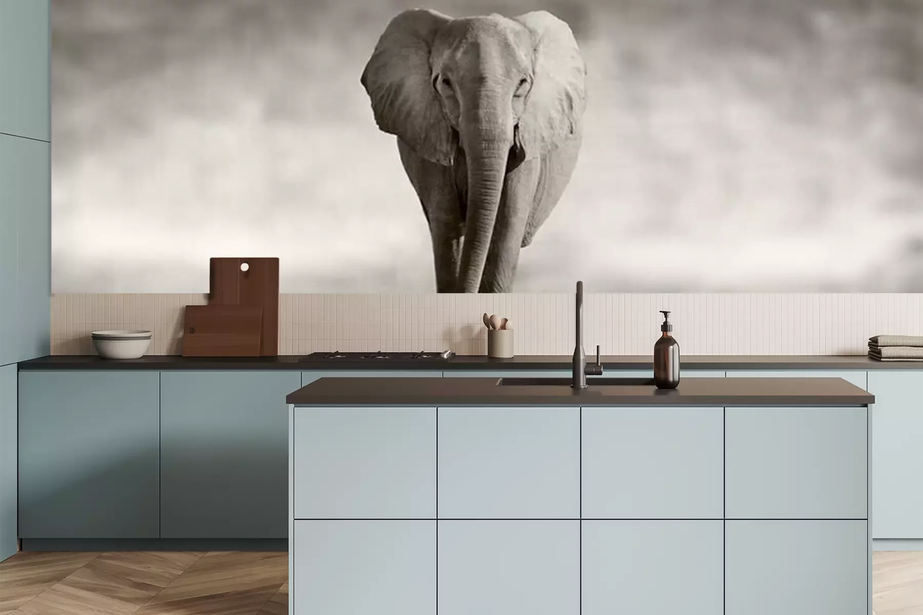 Het materiaal Premium is een glad vinyl op vlies, dat bestand is tegen uitrekken en vervorming. Het is dampdoorlatend – de muren kunnen vrij ademen – waardoor het geschikt is voor gebruik in de keuken en badkamer. Bij vervuiling kan het materiaal worden afgenomen met een vochtige doek. De maximale breedte van één baan bedraagt 95 of 105 cm, afhankelijk van de beschikbaarheid. Montage vindt plaats met de rand-aan-rand methode, wat een esthetisch resultaat zonder zichtbare naden oplevert. Omdat de lijm rechtstreeks op de muur wordt aangebracht, verloopt de installatie van het fotobehang snel en eenvoudig.