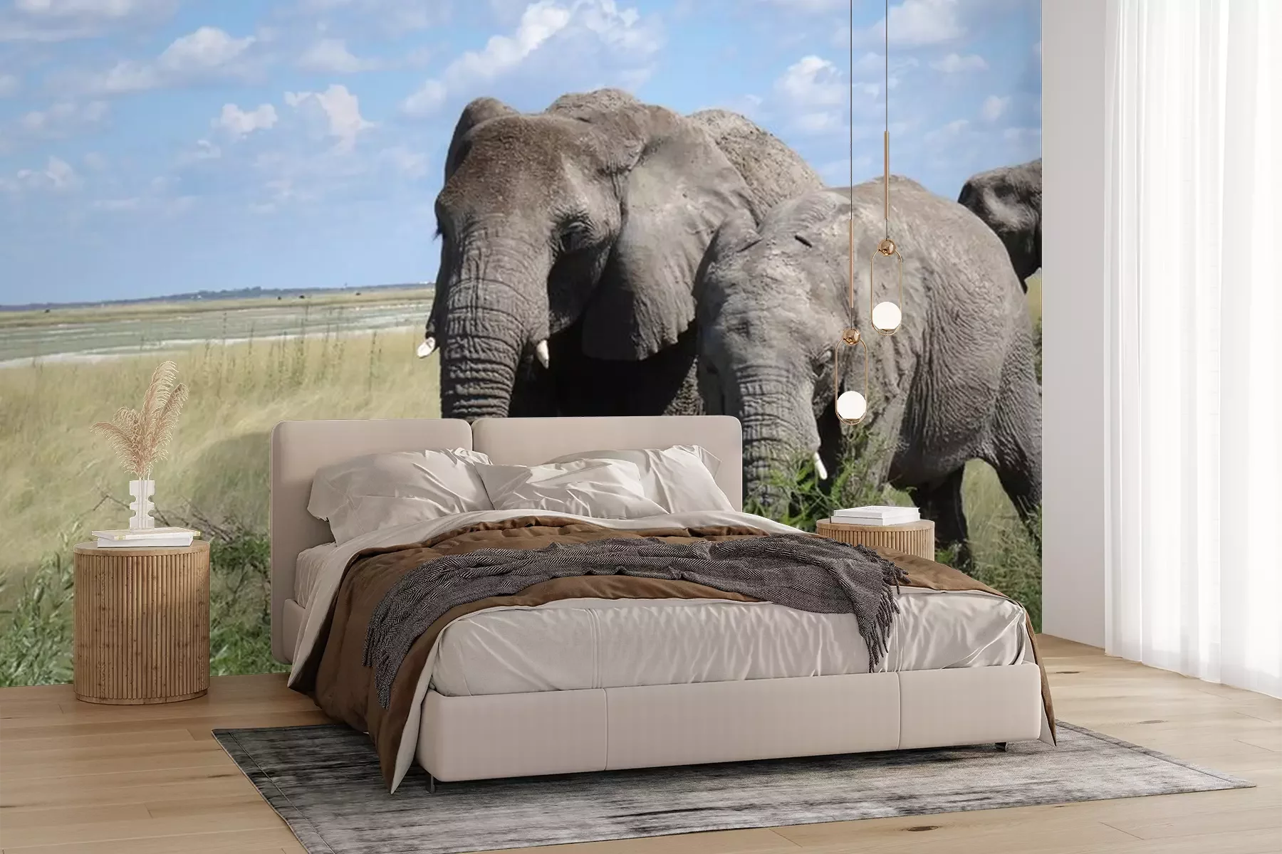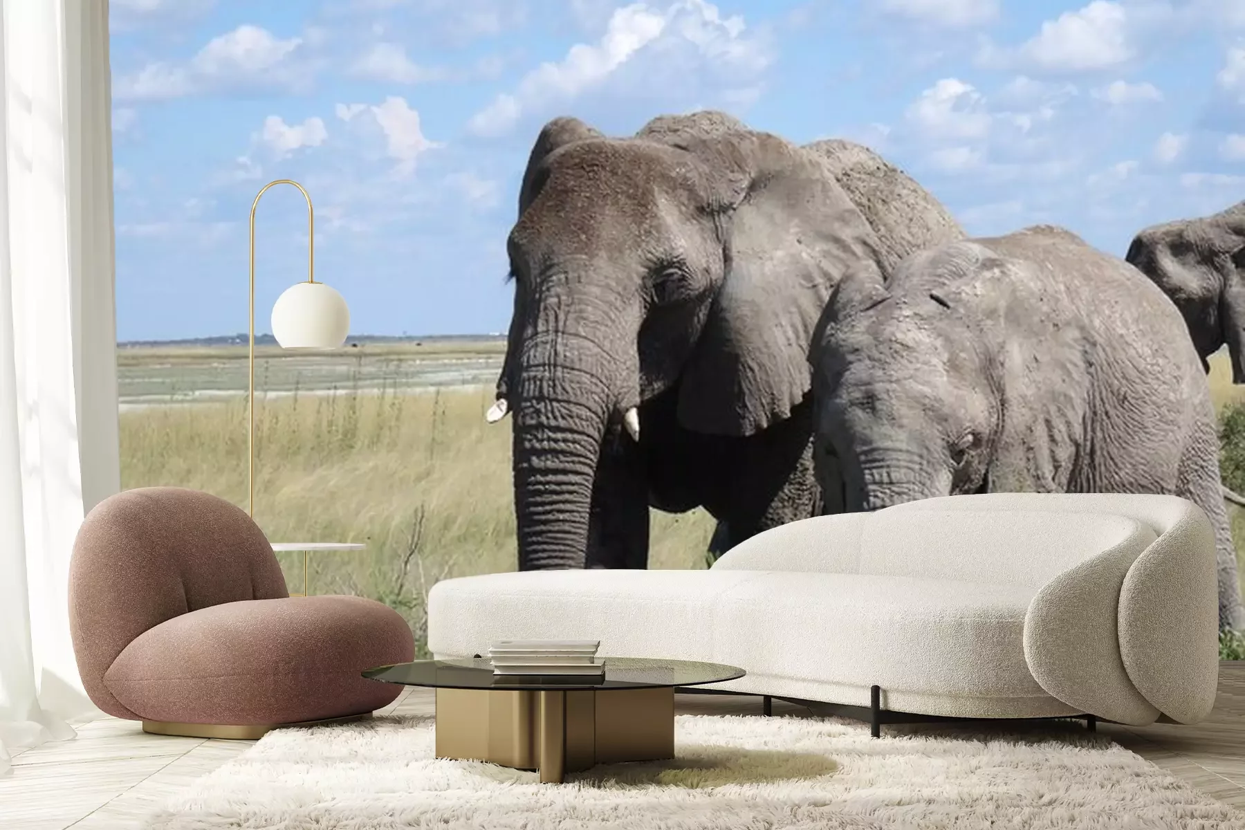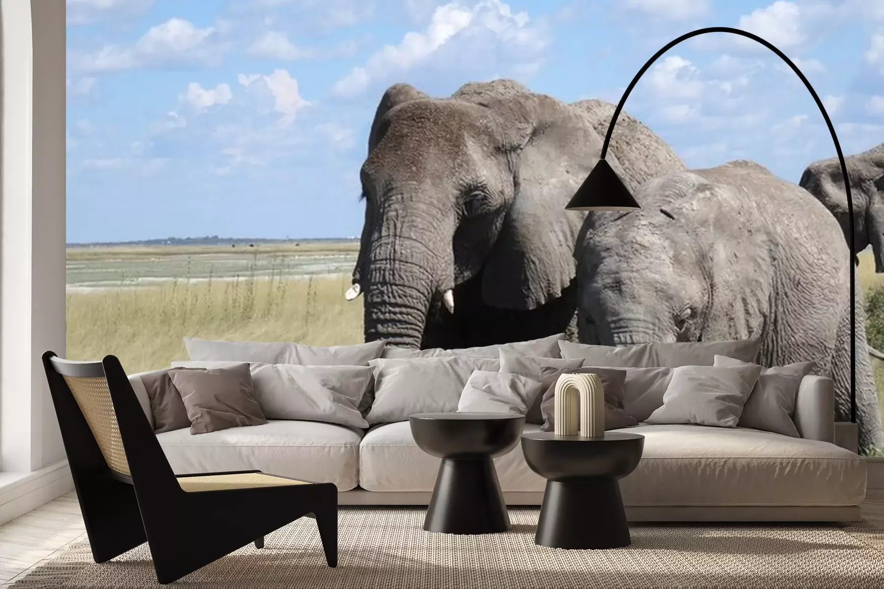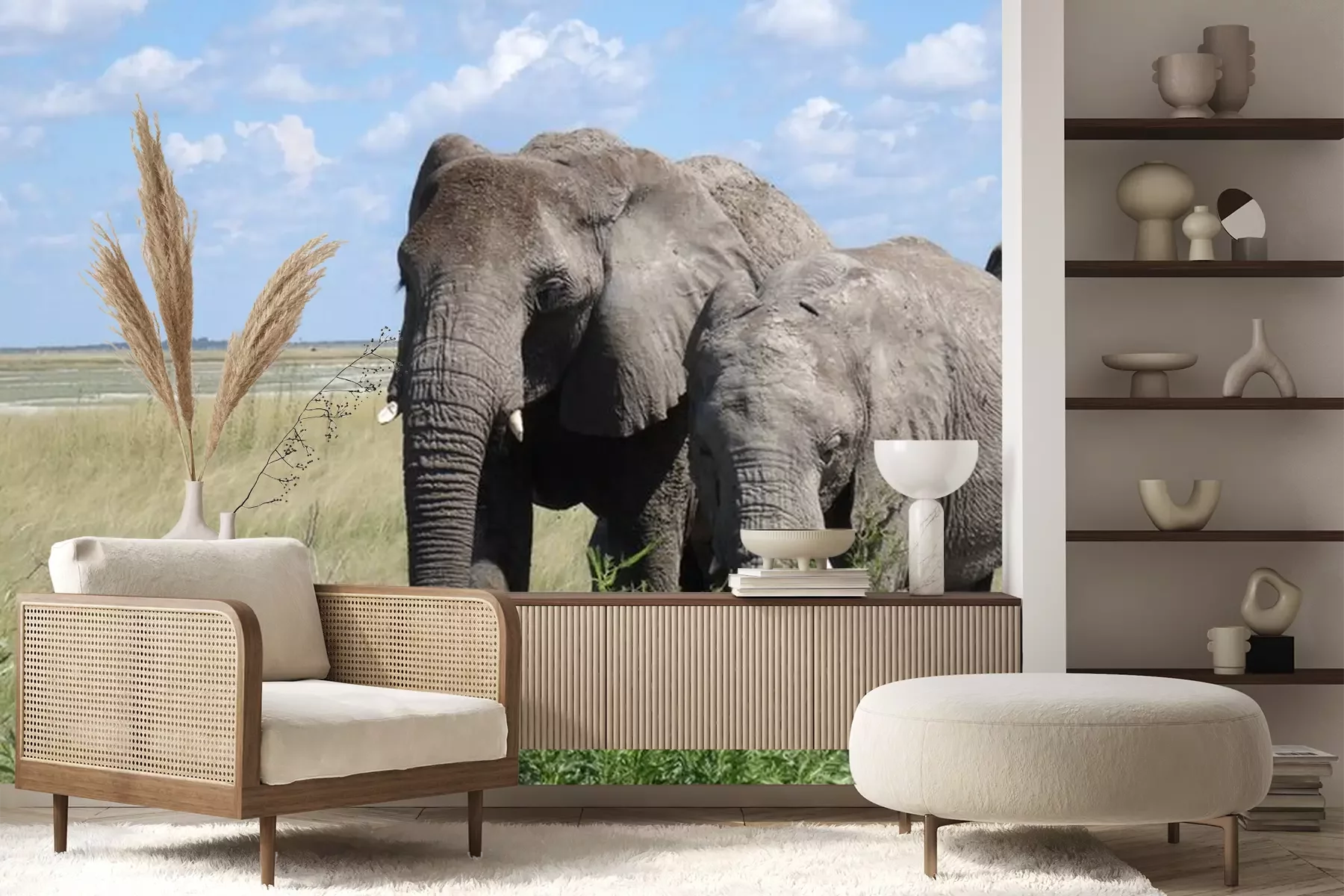 Fotobehang Olifant op groen gras