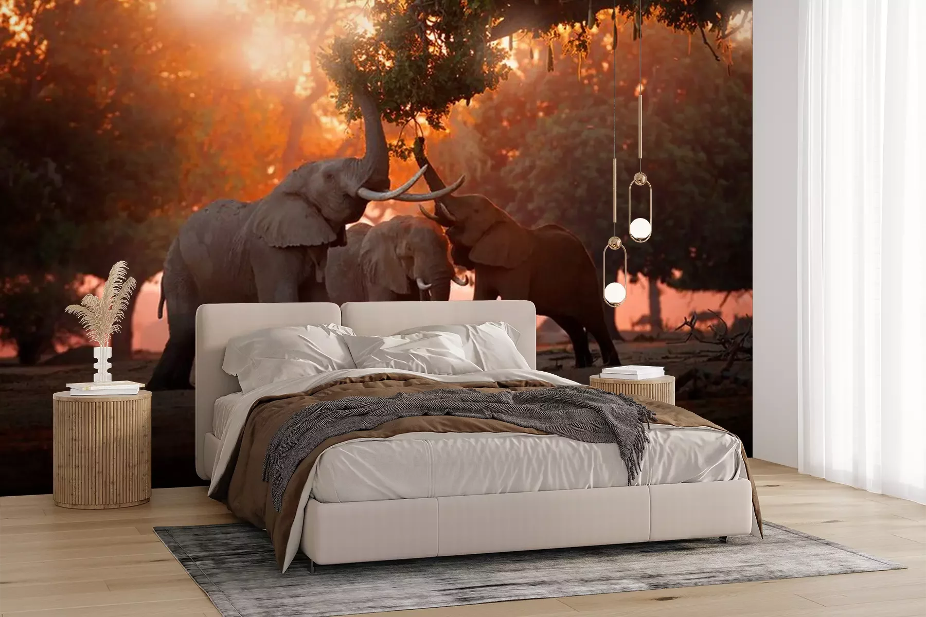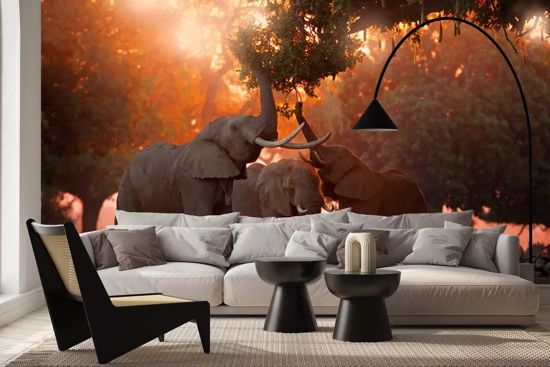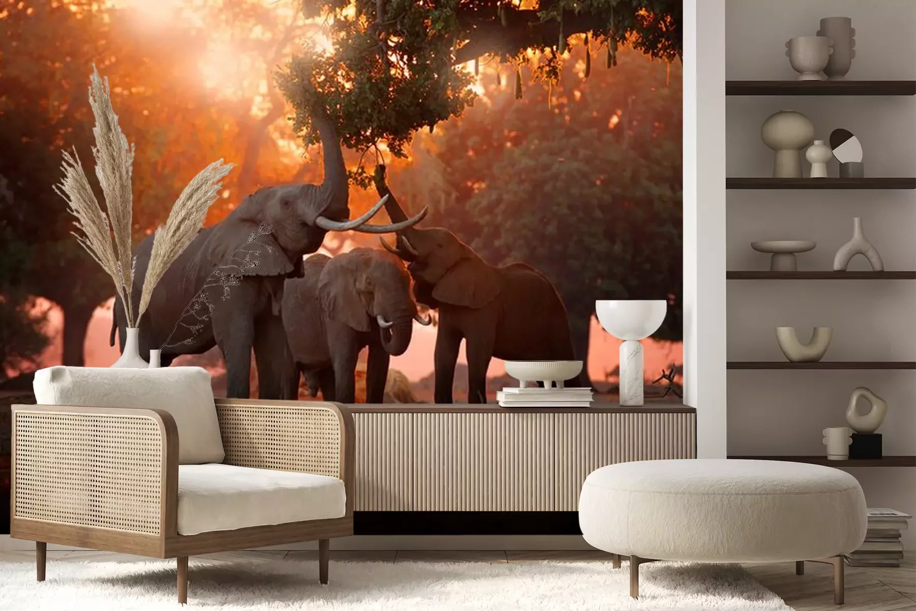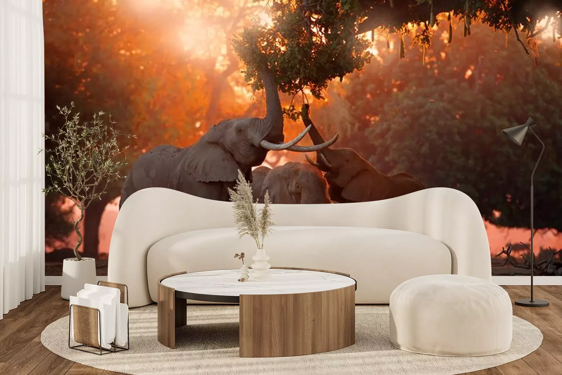 Fotobehang Olifanten op een achtergrond van oranje lucht