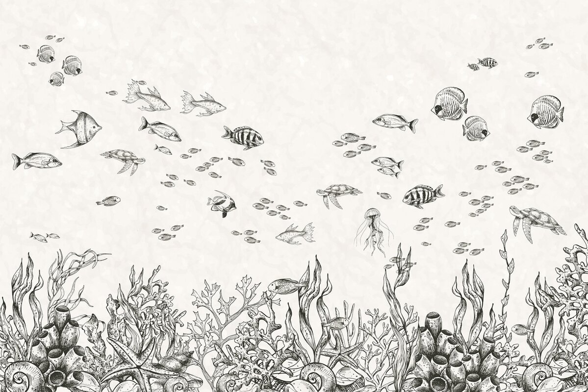 Fotobehang: Onderwaterwereld met vissen in minimalistische stijl