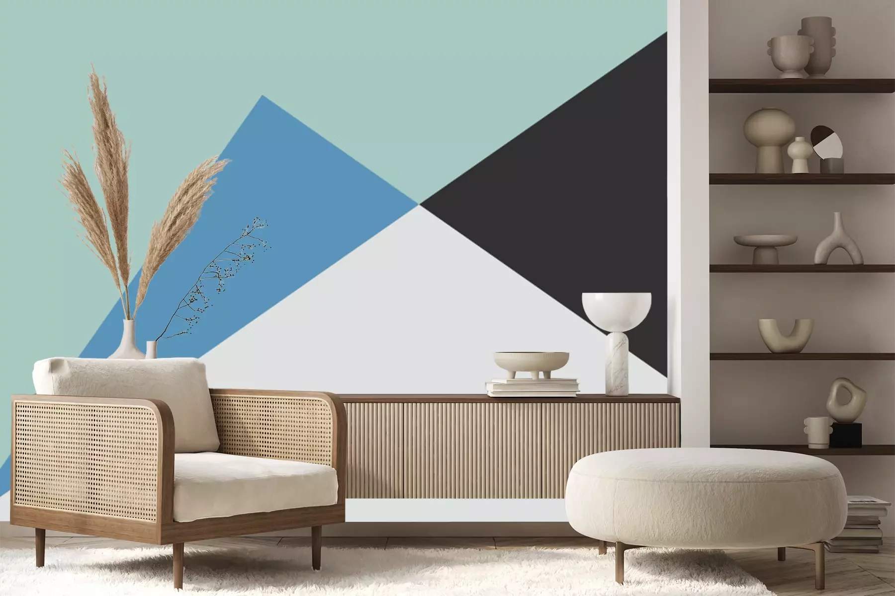 Ongelijkzijdige driehoeken met overheersend groene tinten