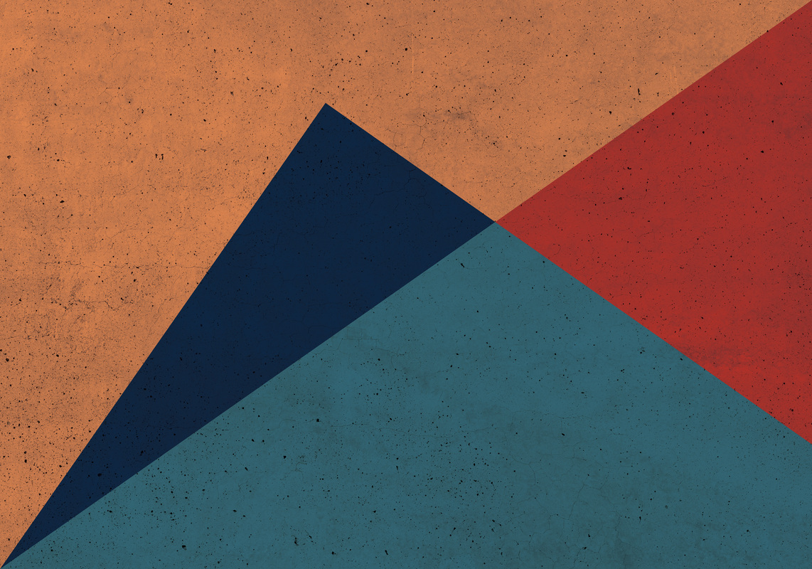 Ongelijkzijdige driehoeken met overheersend oranje tinten op betonnen achtergrond