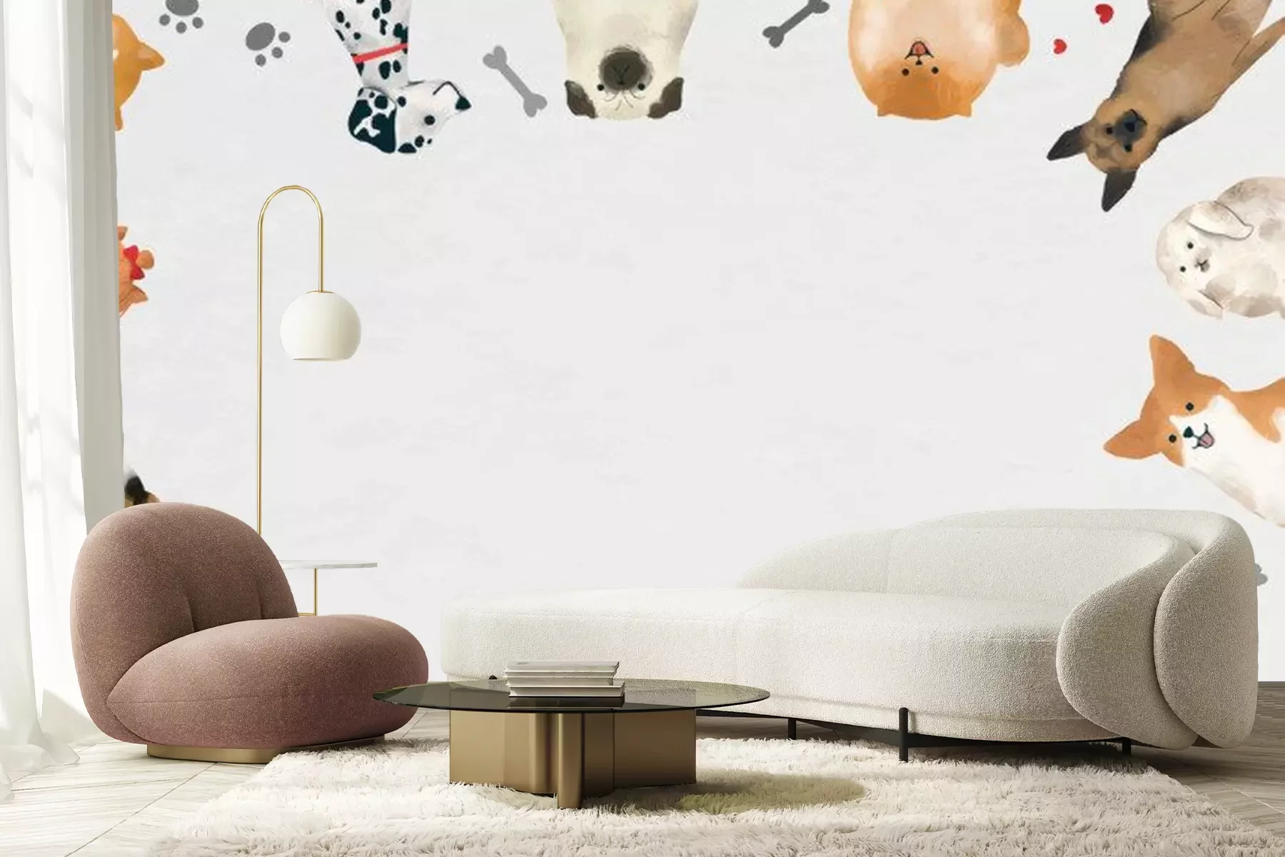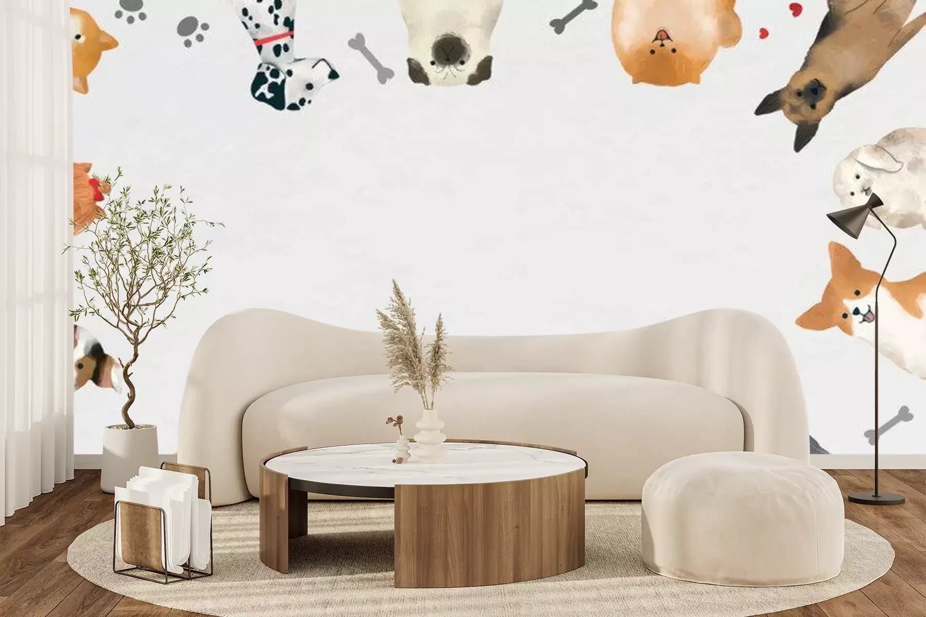 Fotobehang Ontwerp met schattige hondjes op een lichte achtergrond