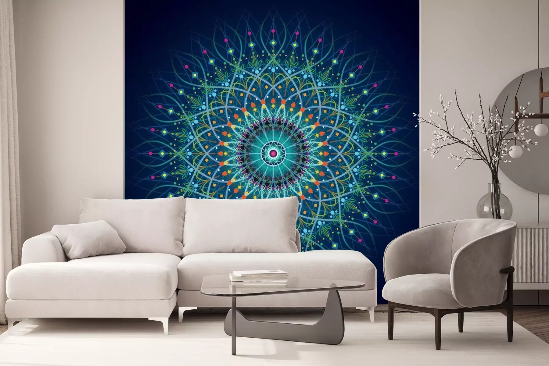 Fotobehang Oosterse mandala op donkerblauwe achtergrond