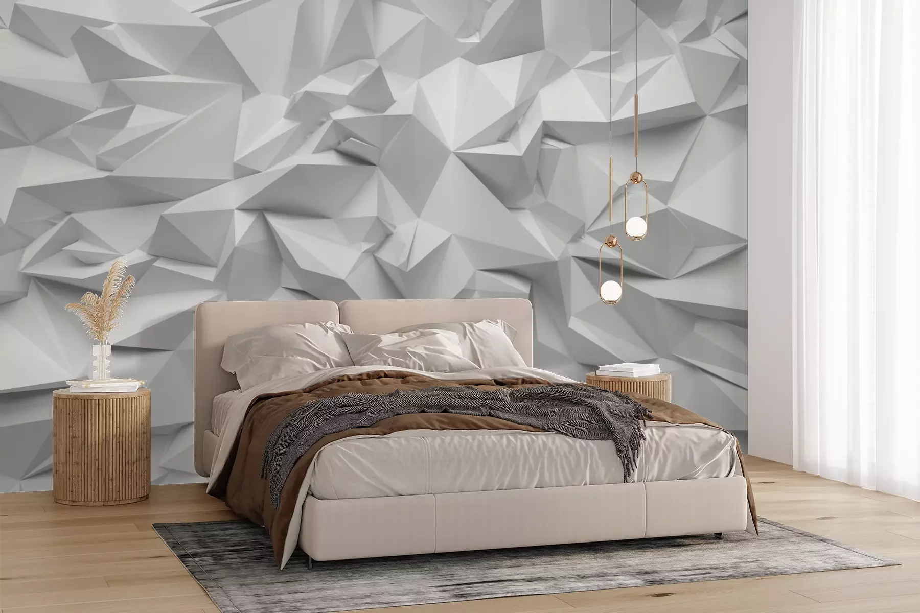 Het materiaal Premium+ is een gestructureerd vinyl op vlies met een gewicht van 255 g/m², dat kleine oneffenheden in de muur effectief camoufleert. De subtiele structuur van fijn zand geeft het oppervlak een exclusieve uitstraling, terwijl de halfmatte afwerking de diepte van de kleuren benadrukt. Het materiaal is dampdoorlatend, waardoor het ook in de keuken en badkamer kan worden gebruikt. De maximale breedte van één baan bedraagt 100 cm – bij grotere afmetingen wordt het fotobehang in meerdere gelijke banen verdeeld. De lijm wordt direct op de muur aangebracht en het behang wordt rand-aan-rand geplakt, wat zorgt voor een esthetisch resultaat zonder zichtbare naden. Het oppervlak kan gemakkelijk worden schoongemaakt door het voorzichtig af te nemen met een vochtige doek.