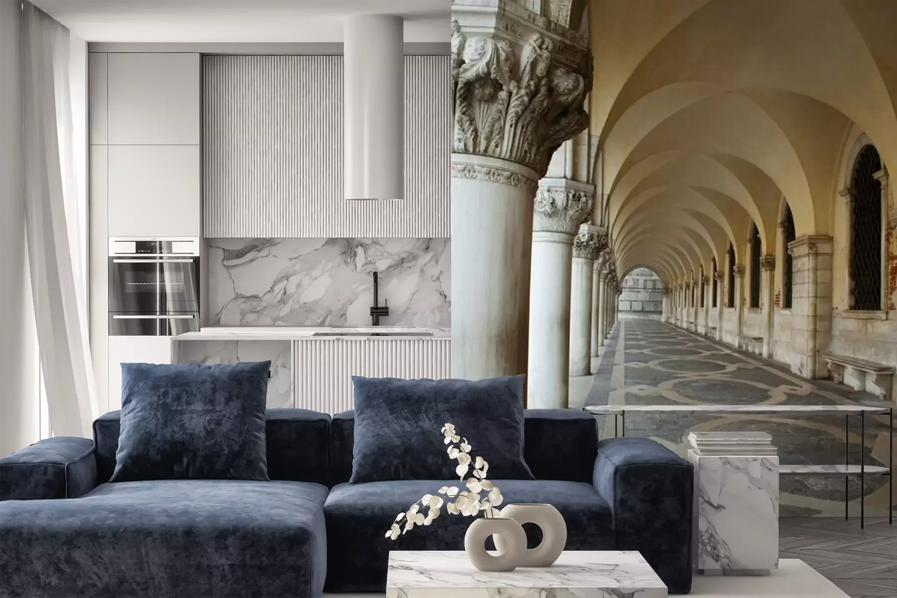 Het materiaal Premium+ is een gestructureerd vinyl op vlies met een gewicht van 255 g/m², dat kleine oneffenheden in de muur effectief camoufleert. De subtiele structuur van fijn zand geeft het oppervlak een exclusieve uitstraling, terwijl de halfmatte afwerking de diepte van de kleuren benadrukt. Het materiaal is dampdoorlatend, waardoor het ook in de keuken en badkamer kan worden gebruikt. De maximale breedte van één baan bedraagt 100 cm – bij grotere afmetingen wordt het fotobehang in meerdere gelijke banen verdeeld. De lijm wordt direct op de muur aangebracht en het behang wordt rand-aan-rand geplakt, wat zorgt voor een esthetisch resultaat zonder zichtbare naden. Het oppervlak kan gemakkelijk worden schoongemaakt door het voorzichtig af te nemen met een vochtige doek.