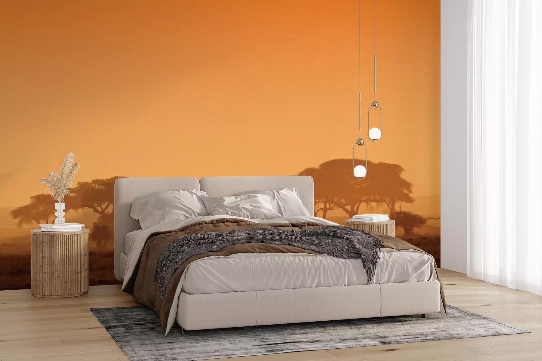 Het materiaal Premium+ is een gestructureerd vinyl op vlies met een gewicht van 255 g/m², dat kleine oneffenheden in de muur effectief camoufleert. De subtiele structuur van fijn zand geeft het oppervlak een exclusieve uitstraling, terwijl de halfmatte afwerking de diepte van de kleuren benadrukt. Het materiaal is dampdoorlatend, waardoor het ook in de keuken en badkamer kan worden gebruikt. De maximale breedte van één baan bedraagt 100 cm – bij grotere afmetingen wordt het fotobehang in meerdere gelijke banen verdeeld. De lijm wordt direct op de muur aangebracht en het behang wordt rand-aan-rand geplakt, wat zorgt voor een esthetisch resultaat zonder zichtbare naden. Het oppervlak kan gemakkelijk worden schoongemaakt door het voorzichtig af te nemen met een vochtige doek.