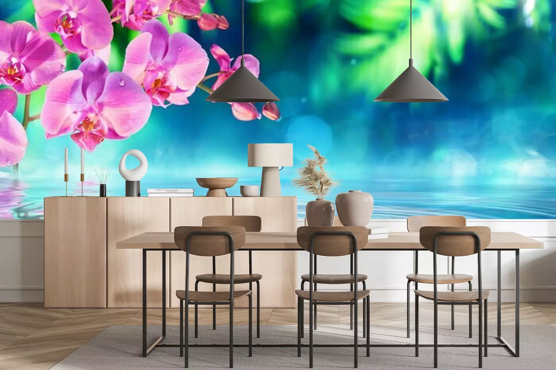 Het materiaal Premium+ is een gestructureerd vinyl op vlies met een gewicht van 255 g/m², dat kleine oneffenheden in de muur effectief camoufleert. De subtiele structuur van fijn zand geeft het oppervlak een exclusieve uitstraling, terwijl de halfmatte afwerking de diepte van de kleuren benadrukt. Het materiaal is dampdoorlatend, waardoor het ook in de keuken en badkamer kan worden gebruikt. De maximale breedte van één baan bedraagt 100 cm – bij grotere afmetingen wordt het fotobehang in meerdere gelijke banen verdeeld. De lijm wordt direct op de muur aangebracht en het behang wordt rand-aan-rand geplakt, wat zorgt voor een esthetisch resultaat zonder zichtbare naden. Het oppervlak kan gemakkelijk worden schoongemaakt door het voorzichtig af te nemen met een vochtige doek.