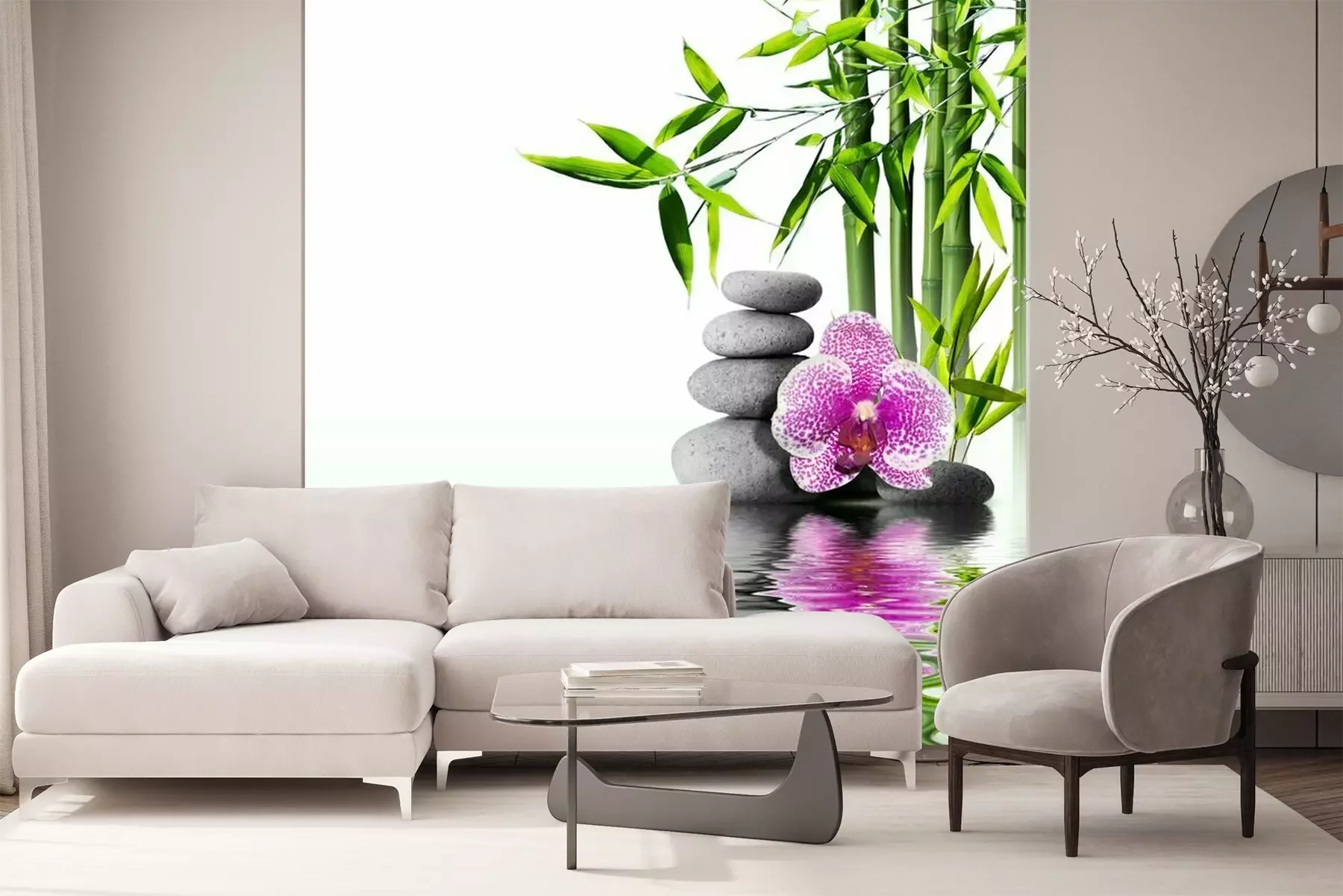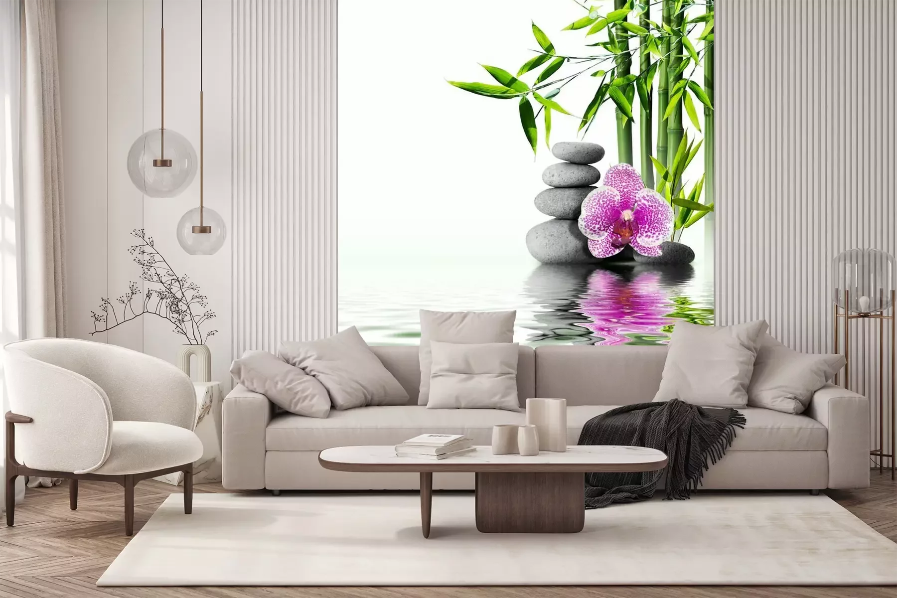 Bamboebloemen en stenenFotobehang