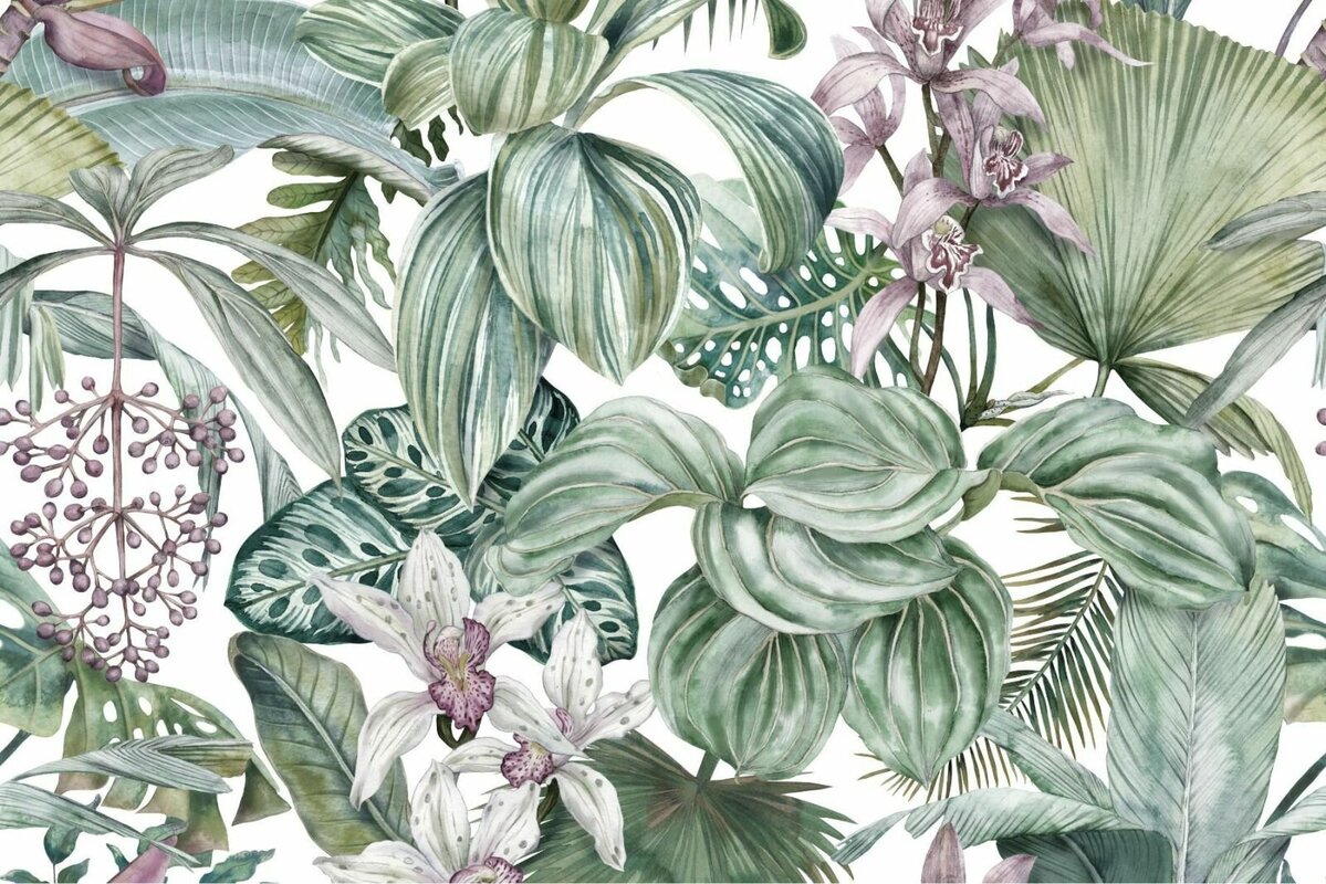 Fotobehang: Orchideeën tussen weelderige vegetatie