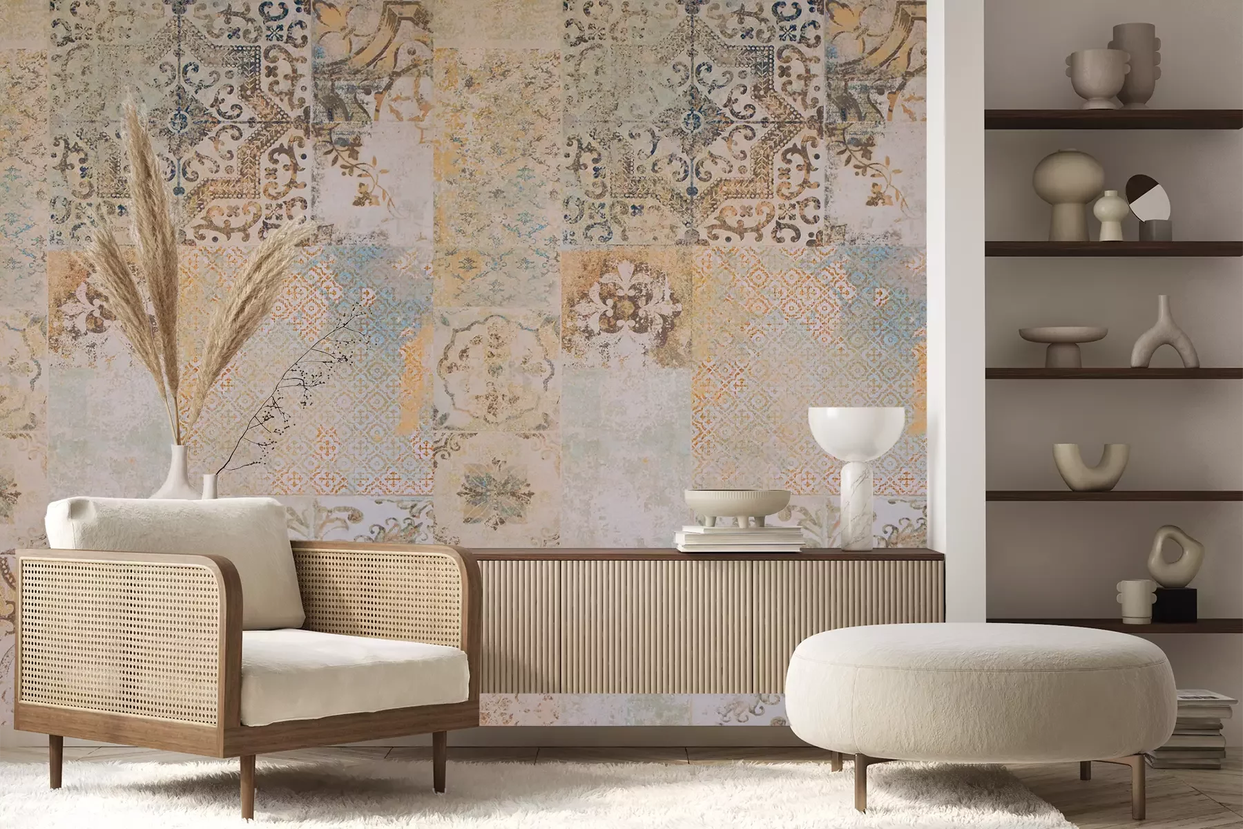 Het materiaal Premium+ is een gestructureerd vinyl op vlies met een gewicht van 255 g/m², dat kleine oneffenheden in de muur effectief camoufleert. De subtiele structuur van fijn zand geeft het oppervlak een exclusieve uitstraling, terwijl de halfmatte afwerking de diepte van de kleuren benadrukt. Het materiaal is dampdoorlatend, waardoor het ook in de keuken en badkamer kan worden gebruikt. De maximale breedte van één baan bedraagt 100 cm – bij grotere afmetingen wordt het fotobehang in meerdere gelijke banen verdeeld. De lijm wordt direct op de muur aangebracht en het behang wordt rand-aan-rand geplakt, wat zorgt voor een esthetisch resultaat zonder zichtbare naden. Het oppervlak kan gemakkelijk worden schoongemaakt door het voorzichtig af te nemen met een vochtige doek.