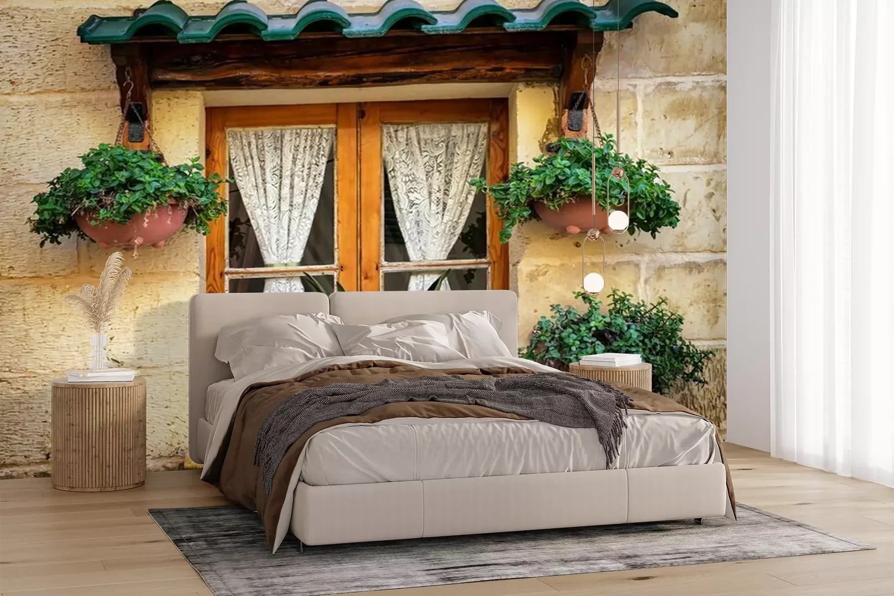 Het materiaal Premium+ is een gestructureerd vinyl op vlies met een gewicht van 255 g/m², dat kleine oneffenheden in de muur effectief camoufleert. De subtiele structuur van fijn zand geeft het oppervlak een exclusieve uitstraling, terwijl de halfmatte afwerking de diepte van de kleuren benadrukt. Het materiaal is dampdoorlatend, waardoor het ook in de keuken en badkamer kan worden gebruikt. De maximale breedte van één baan bedraagt 100 cm – bij grotere afmetingen wordt het fotobehang in meerdere gelijke banen verdeeld. De lijm wordt direct op de muur aangebracht en het behang wordt rand-aan-rand geplakt, wat zorgt voor een esthetisch resultaat zonder zichtbare naden. Het oppervlak kan gemakkelijk worden schoongemaakt door het voorzichtig af te nemen met een vochtige doek.