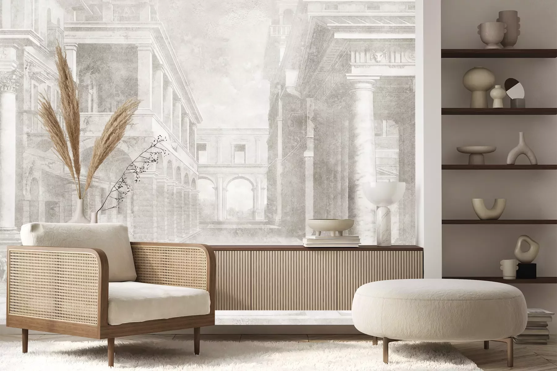 Het materiaal Premium+ is een gestructureerd vinyl op vlies met een gewicht van 255 g/m², dat kleine oneffenheden in de muur effectief camoufleert. De subtiele structuur van fijn zand geeft het oppervlak een exclusieve uitstraling, terwijl de halfmatte afwerking de diepte van de kleuren benadrukt. Het materiaal is dampdoorlatend, waardoor het ook in de keuken en badkamer kan worden gebruikt. De maximale breedte van één baan bedraagt 100 cm – bij grotere afmetingen wordt het fotobehang in meerdere gelijke banen verdeeld. De lijm wordt direct op de muur aangebracht en het behang wordt rand-aan-rand geplakt, wat zorgt voor een esthetisch resultaat zonder zichtbare naden. Het oppervlak kan gemakkelijk worden schoongemaakt door het voorzichtig af te nemen met een vochtige doek.
