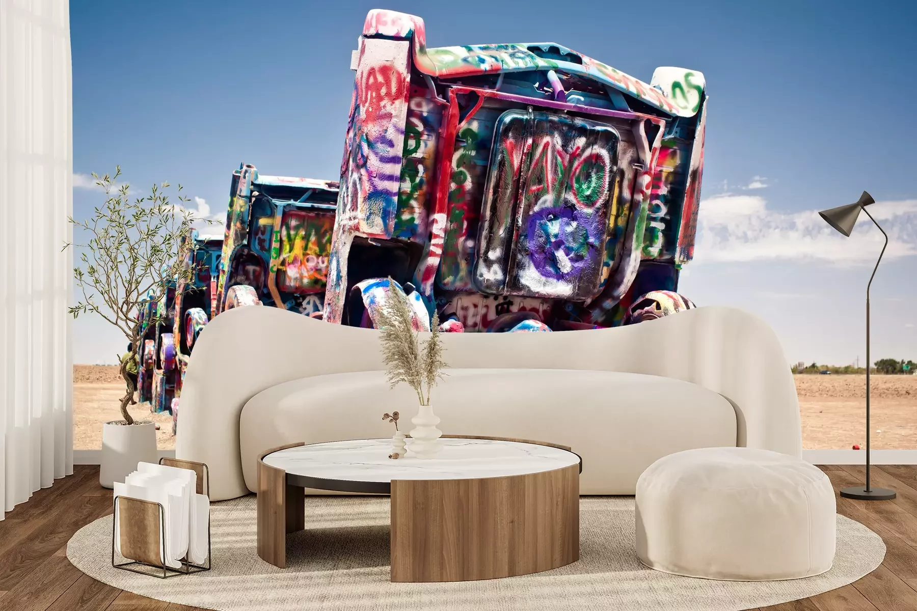 Het fotobehang wordt geleverd in banen. De afmetingen en het aantal banen waaruit het volledige fotobehang bestaat, zijn afhankelijk van het gekozen materiaal. Wanneer het formaat de maximale materiaalbreedte overschrijdt, bestaat de print uit meerdere gelijkmatige banen.
