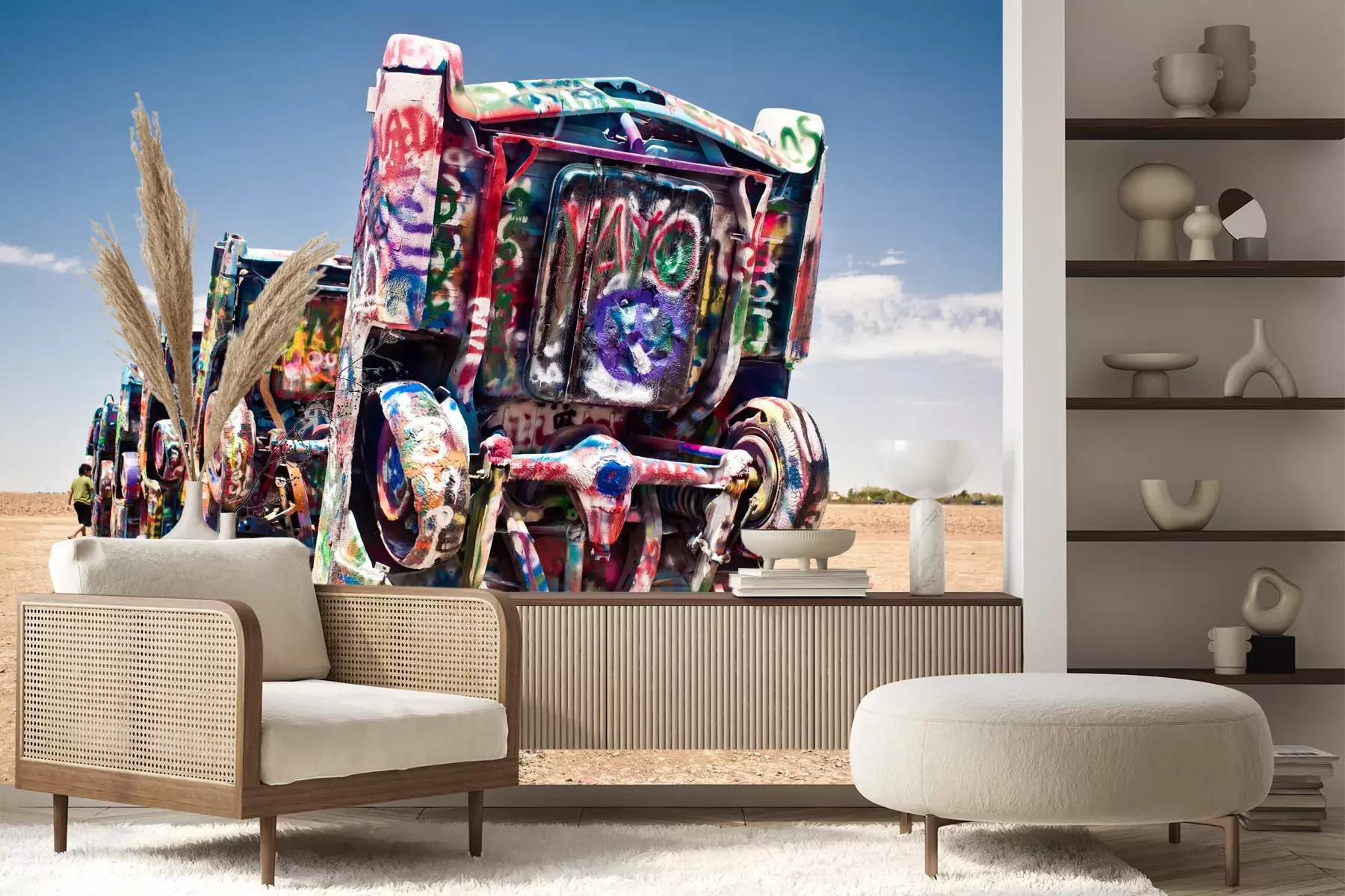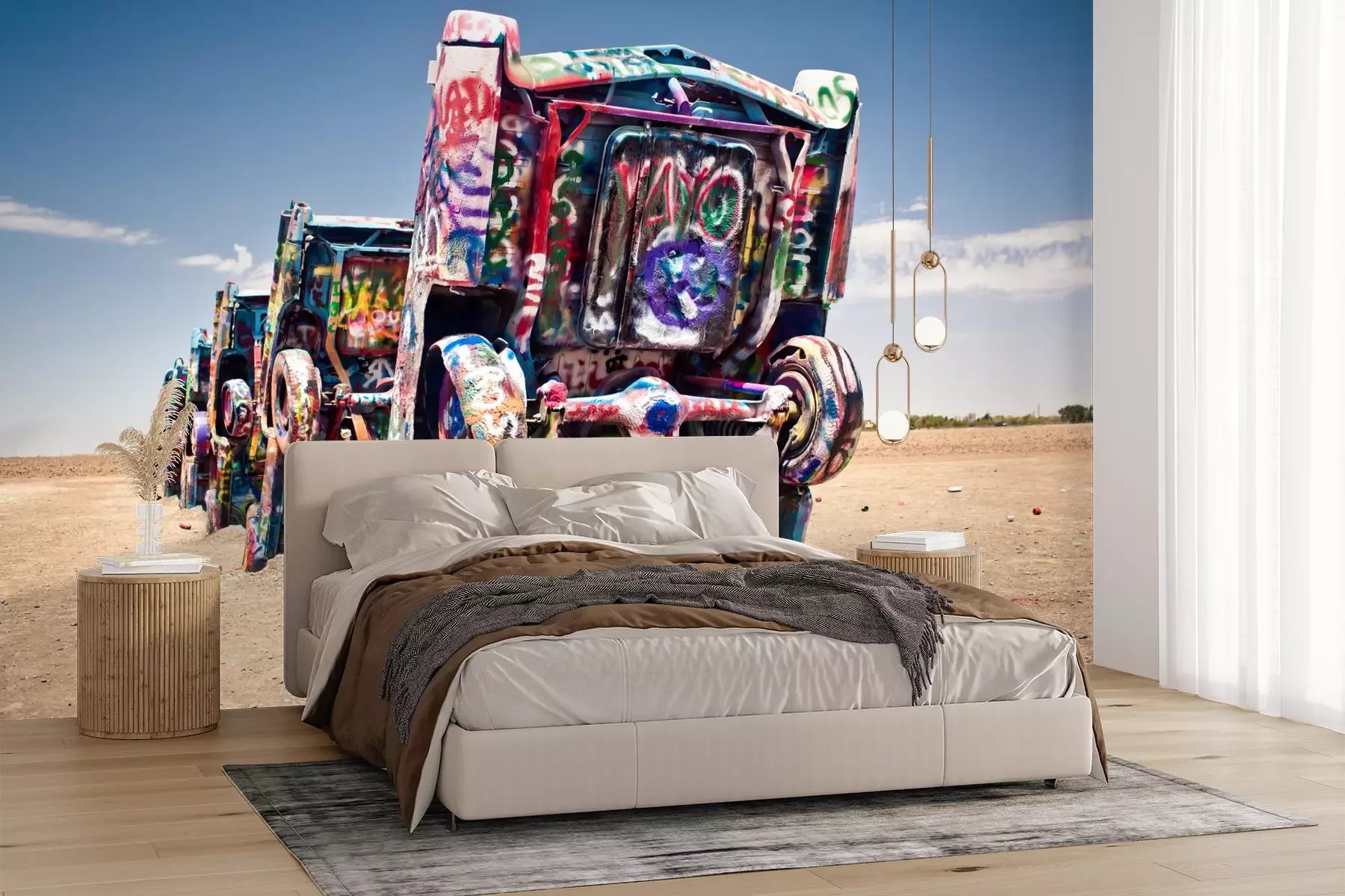 Het materiaal Premium+ is een gestructureerd vinyl op vlies met een gewicht van 255 g/m², dat kleine oneffenheden in de muur effectief camoufleert. De subtiele structuur van fijn zand geeft het oppervlak een exclusieve uitstraling, terwijl de halfmatte afwerking de diepte van de kleuren benadrukt. Het materiaal is dampdoorlatend, waardoor het ook in de keuken en badkamer kan worden gebruikt. De maximale breedte van één baan bedraagt 100 cm – bij grotere afmetingen wordt het fotobehang in meerdere gelijke banen verdeeld. De lijm wordt direct op de muur aangebracht en het behang wordt rand-aan-rand geplakt, wat zorgt voor een esthetisch resultaat zonder zichtbare naden. Het oppervlak kan gemakkelijk worden schoongemaakt door het voorzichtig af te nemen met een vochtige doek.