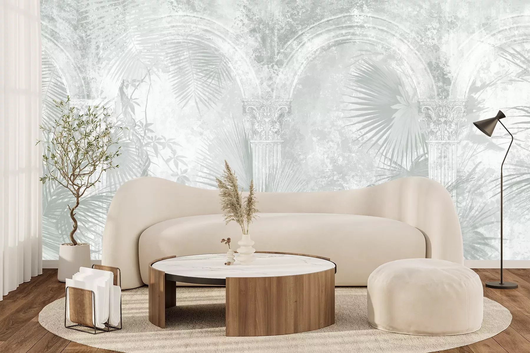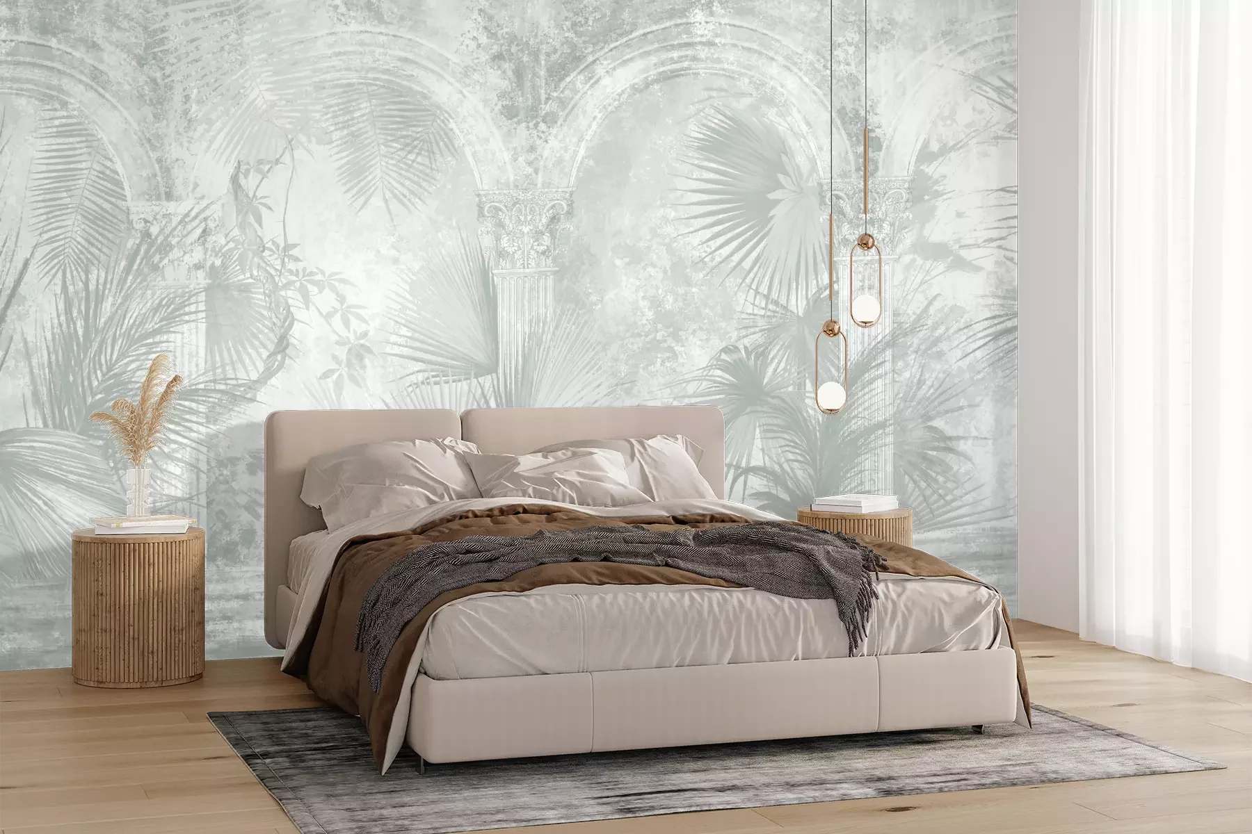 Het materiaal Premium+ is een gestructureerd vinyl op vlies met een gewicht van 255 g/m², dat kleine oneffenheden in de muur effectief camoufleert. De subtiele structuur van fijn zand geeft het oppervlak een exclusieve uitstraling, terwijl de halfmatte afwerking de diepte van de kleuren benadrukt. Het materiaal is dampdoorlatend, waardoor het ook in de keuken en badkamer kan worden gebruikt. De maximale breedte van één baan bedraagt 100 cm – bij grotere afmetingen wordt het fotobehang in meerdere gelijke banen verdeeld. De lijm wordt direct op de muur aangebracht en het behang wordt rand-aan-rand geplakt, wat zorgt voor een esthetisch resultaat zonder zichtbare naden. Het oppervlak kan gemakkelijk worden schoongemaakt door het voorzichtig af te nemen met een vochtige doek.