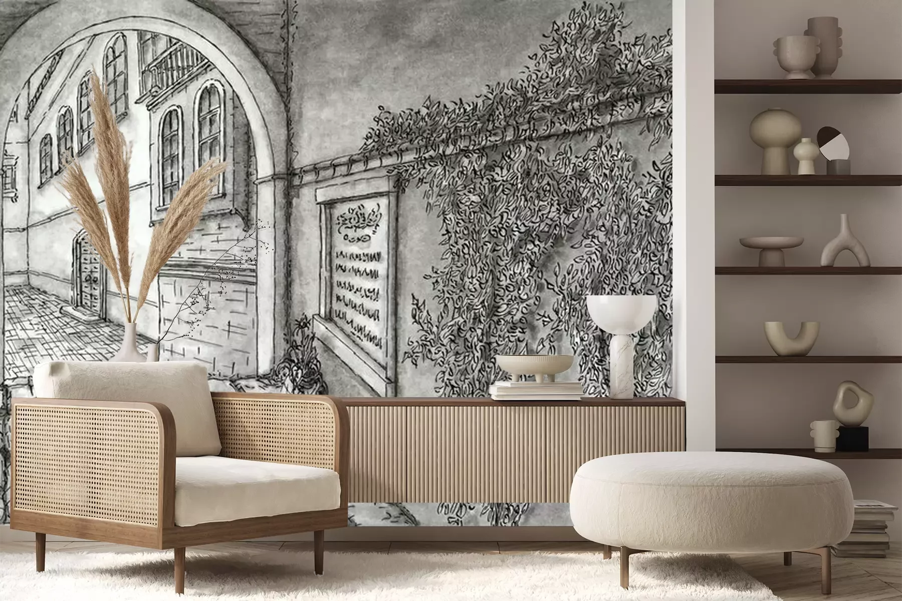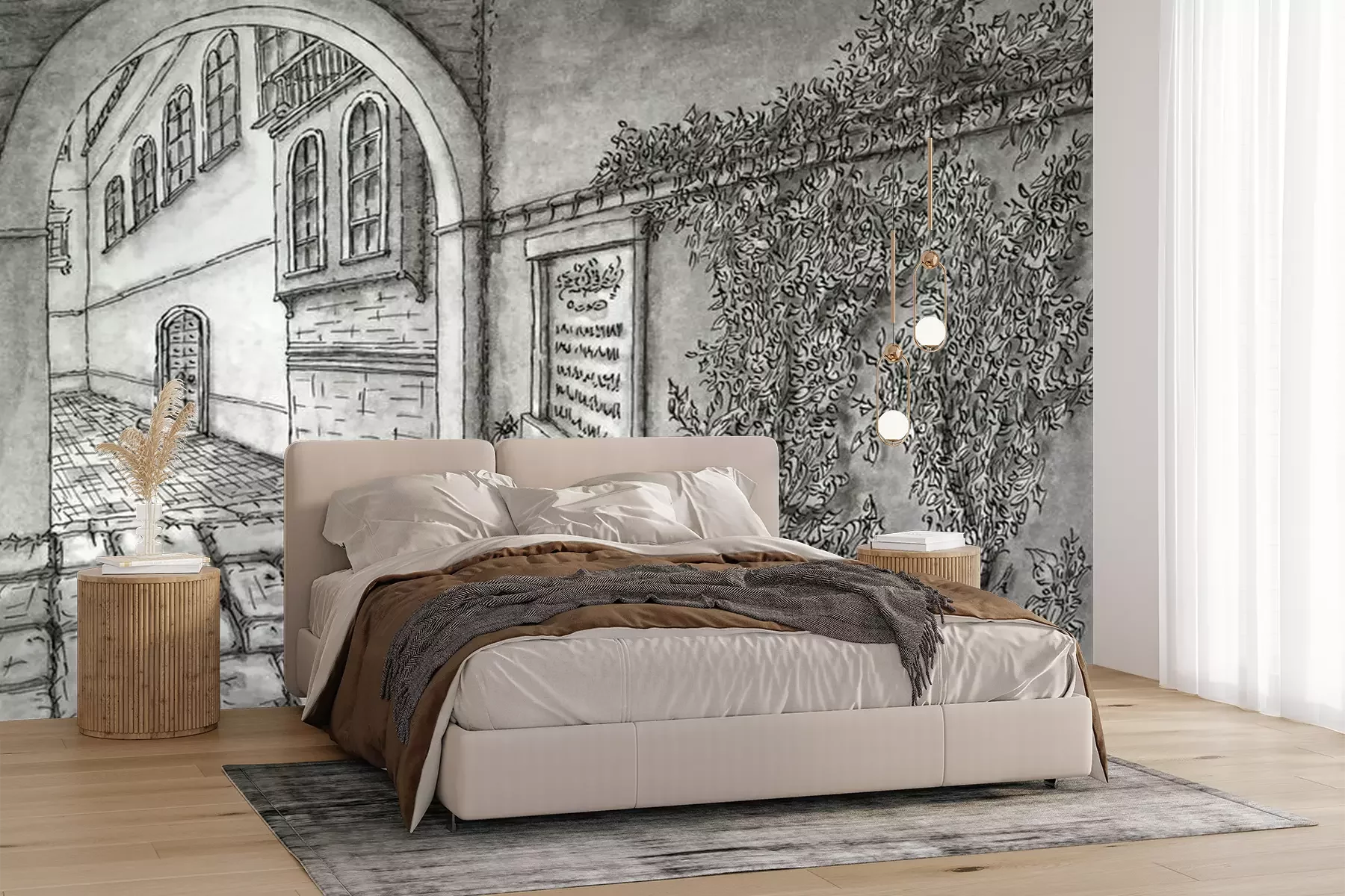 Het materiaal Premium+ is een gestructureerd vinyl op vlies met een gewicht van 255 g/m², dat kleine oneffenheden in de muur effectief camoufleert. De subtiele structuur van fijn zand geeft het oppervlak een exclusieve uitstraling, terwijl de halfmatte afwerking de diepte van de kleuren benadrukt. Het materiaal is dampdoorlatend, waardoor het ook in de keuken en badkamer kan worden gebruikt. De maximale breedte van één baan bedraagt 100 cm – bij grotere afmetingen wordt het fotobehang in meerdere gelijke banen verdeeld. De lijm wordt direct op de muur aangebracht en het behang wordt rand-aan-rand geplakt, wat zorgt voor een esthetisch resultaat zonder zichtbare naden. Het oppervlak kan gemakkelijk worden schoongemaakt door het voorzichtig af te nemen met een vochtige doek.