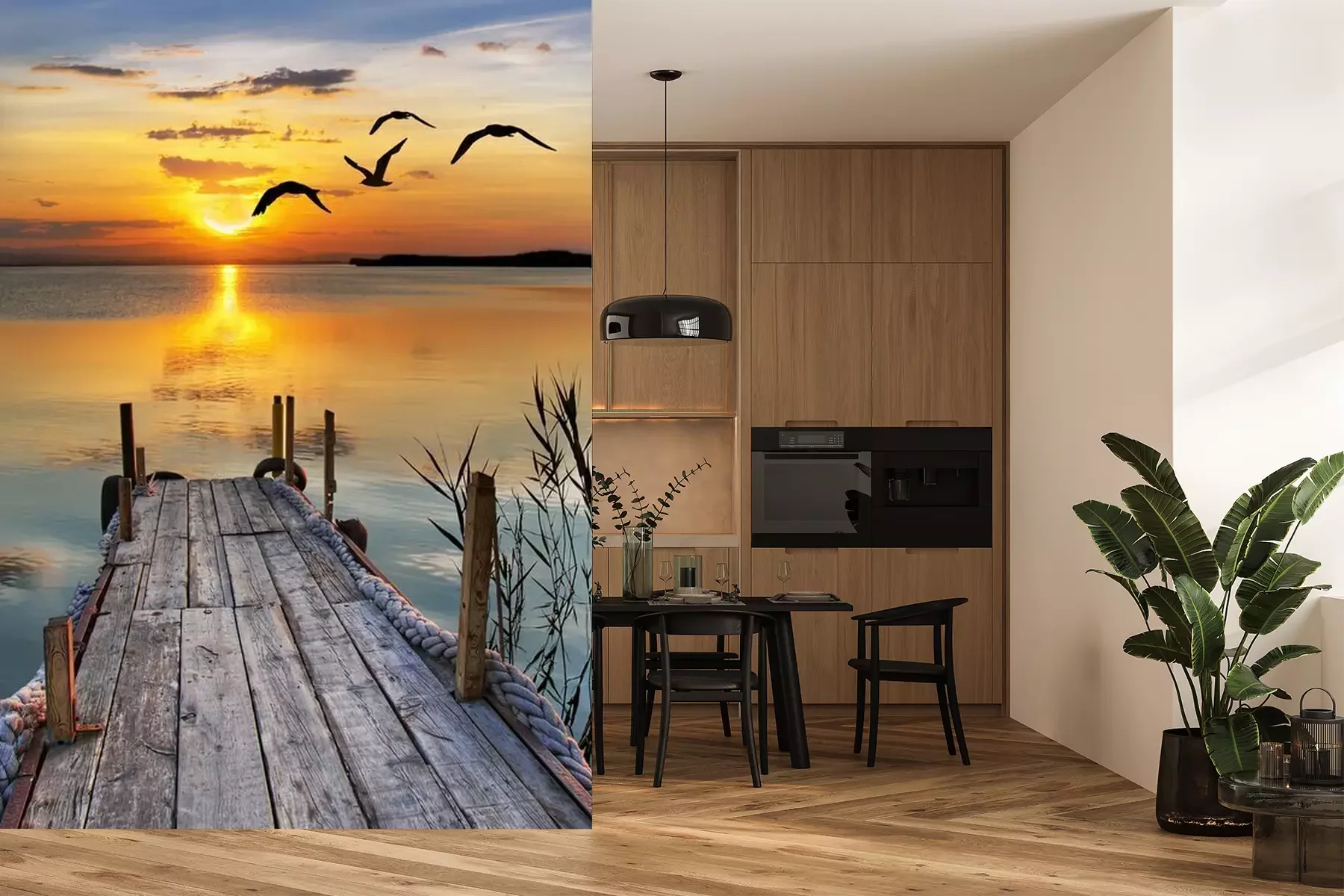Het materiaal Premium+ is een gestructureerd vinyl op vlies met een gewicht van 255 g/m², dat kleine oneffenheden in de muur effectief camoufleert. De subtiele structuur van fijn zand geeft het oppervlak een exclusieve uitstraling, terwijl de halfmatte afwerking de diepte van de kleuren benadrukt. Het materiaal is dampdoorlatend, waardoor het ook in de keuken en badkamer kan worden gebruikt. De maximale breedte van één baan bedraagt 100 cm – bij grotere afmetingen wordt het fotobehang in meerdere gelijke banen verdeeld. De lijm wordt direct op de muur aangebracht en het behang wordt rand-aan-rand geplakt, wat zorgt voor een esthetisch resultaat zonder zichtbare naden. Het oppervlak kan gemakkelijk worden schoongemaakt door het voorzichtig af te nemen met een vochtige doek.