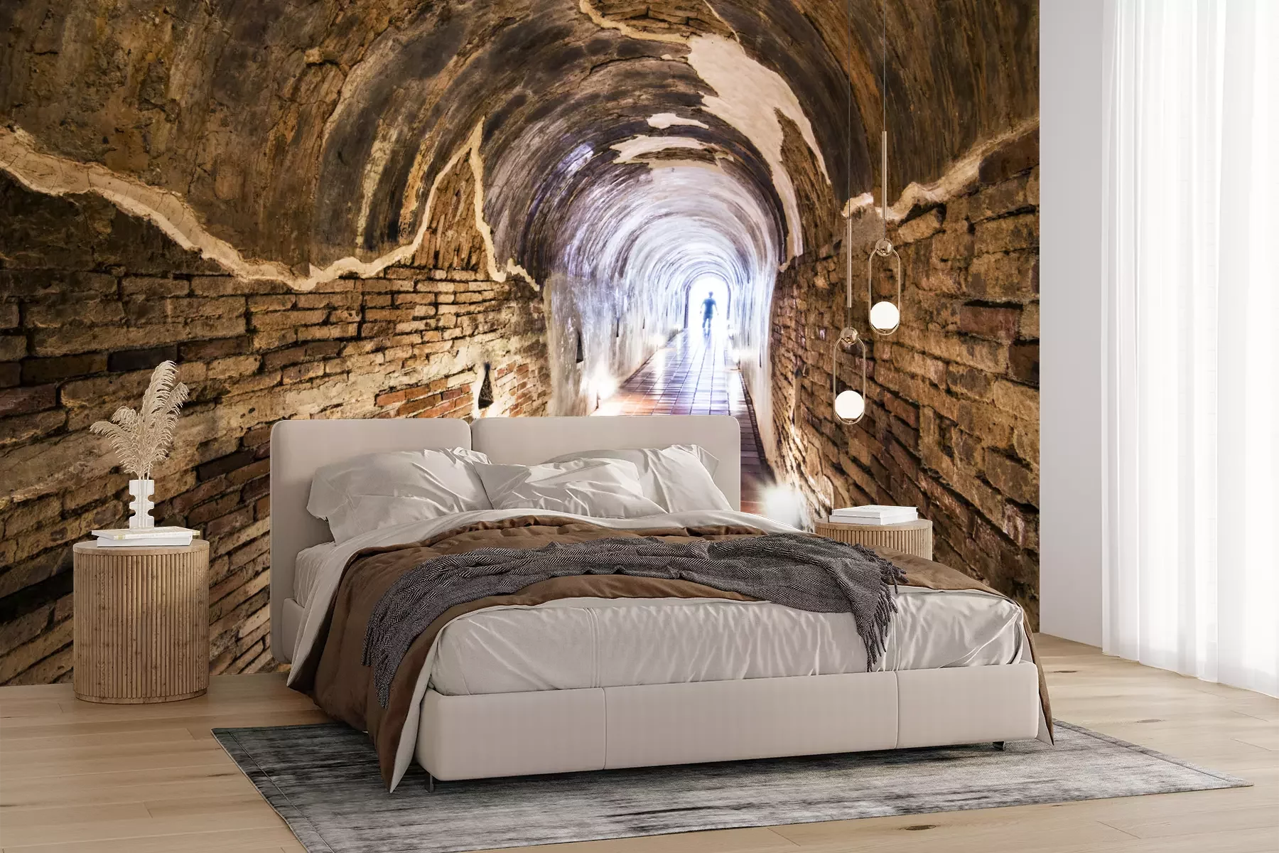 Het materiaal Premium+ is een gestructureerd vinyl op vlies met een gewicht van 255 g/m², dat kleine oneffenheden in de muur effectief camoufleert. De subtiele structuur van fijn zand geeft het oppervlak een exclusieve uitstraling, terwijl de halfmatte afwerking de diepte van de kleuren benadrukt. Het materiaal is dampdoorlatend, waardoor het ook in de keuken en badkamer kan worden gebruikt. De maximale breedte van één baan bedraagt 100 cm – bij grotere afmetingen wordt het fotobehang in meerdere gelijke banen verdeeld. De lijm wordt direct op de muur aangebracht en het behang wordt rand-aan-rand geplakt, wat zorgt voor een esthetisch resultaat zonder zichtbare naden. Het oppervlak kan gemakkelijk worden schoongemaakt door het voorzichtig af te nemen met een vochtige doek.