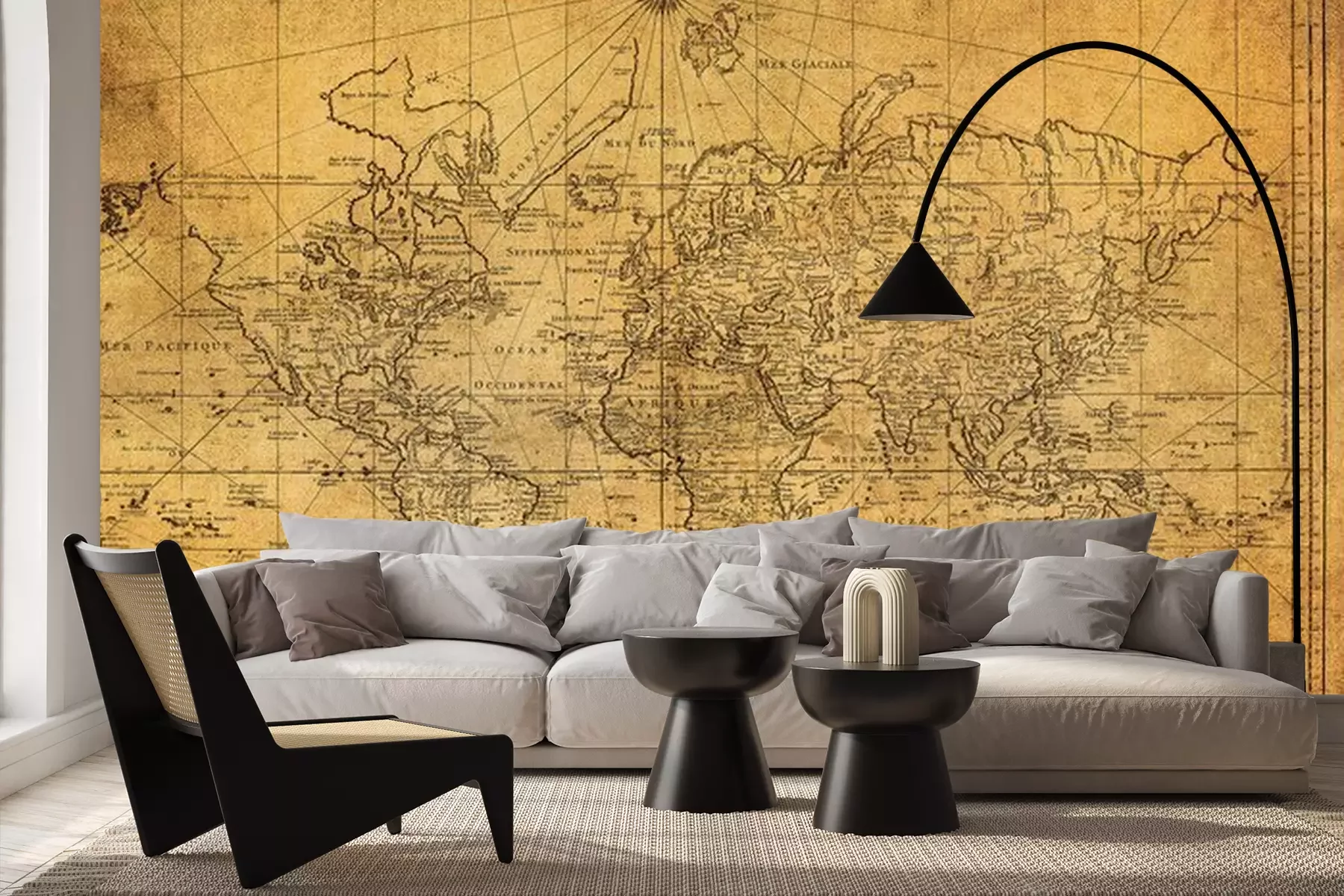 17e eeuwse kaart in sepiaFotobehang