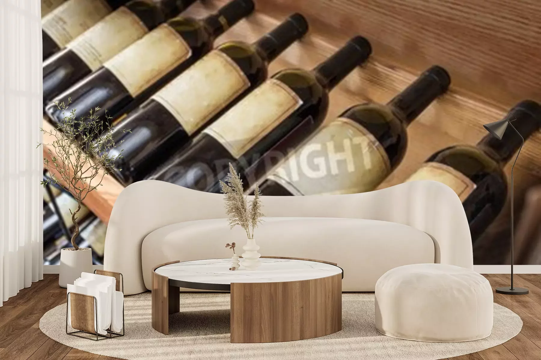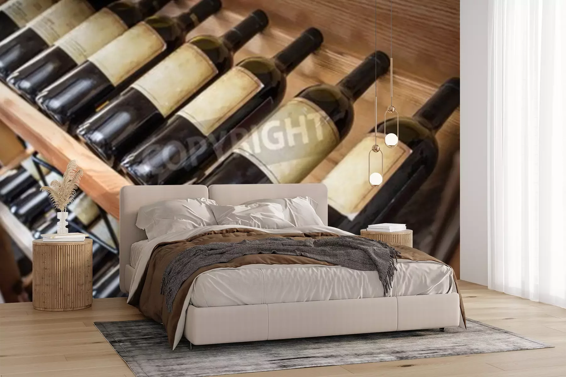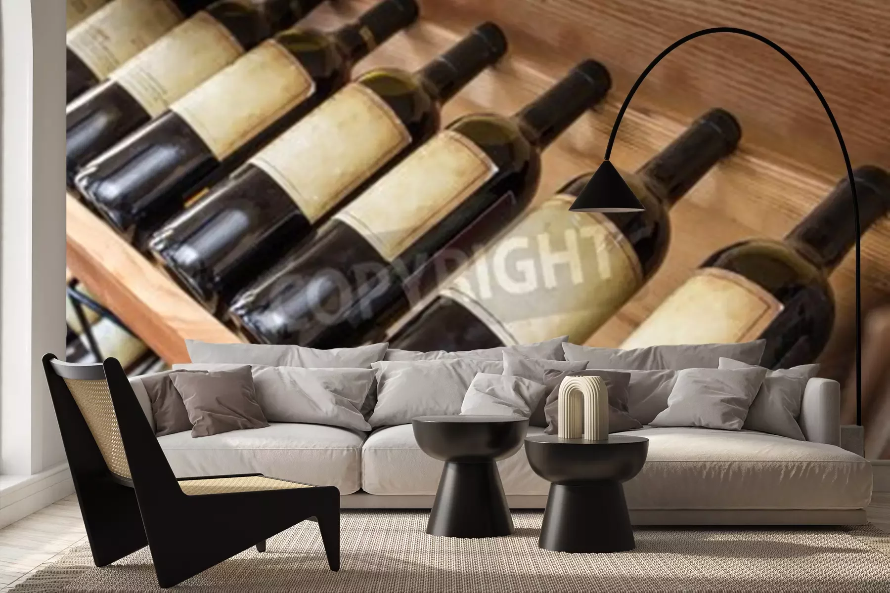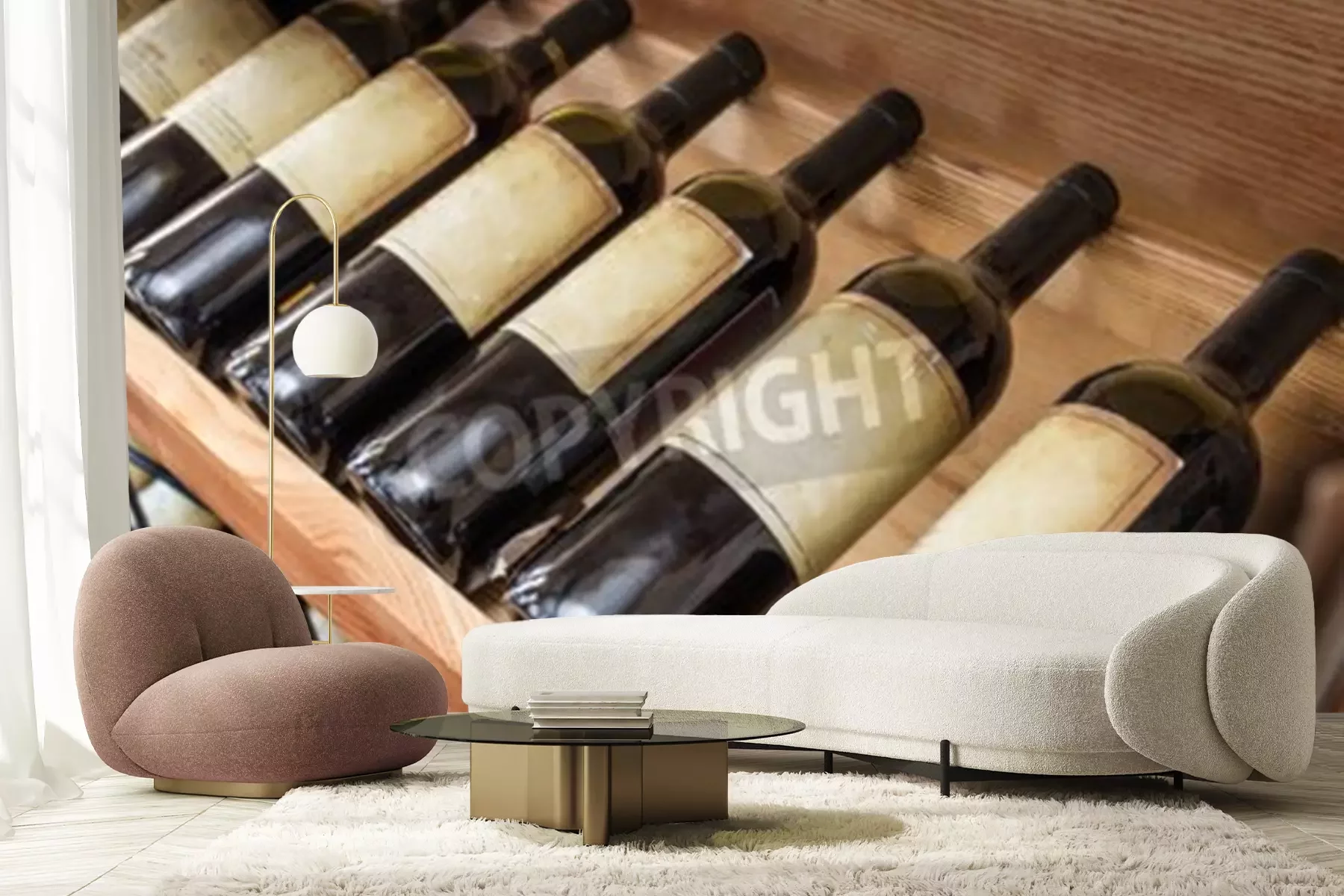 Fotobehang Oude wijn flessen op het wijnrek.