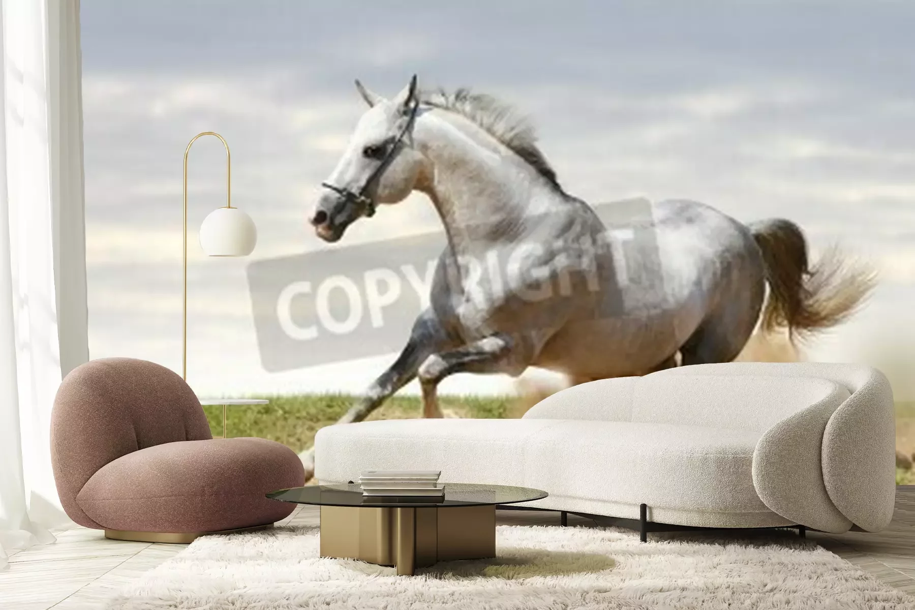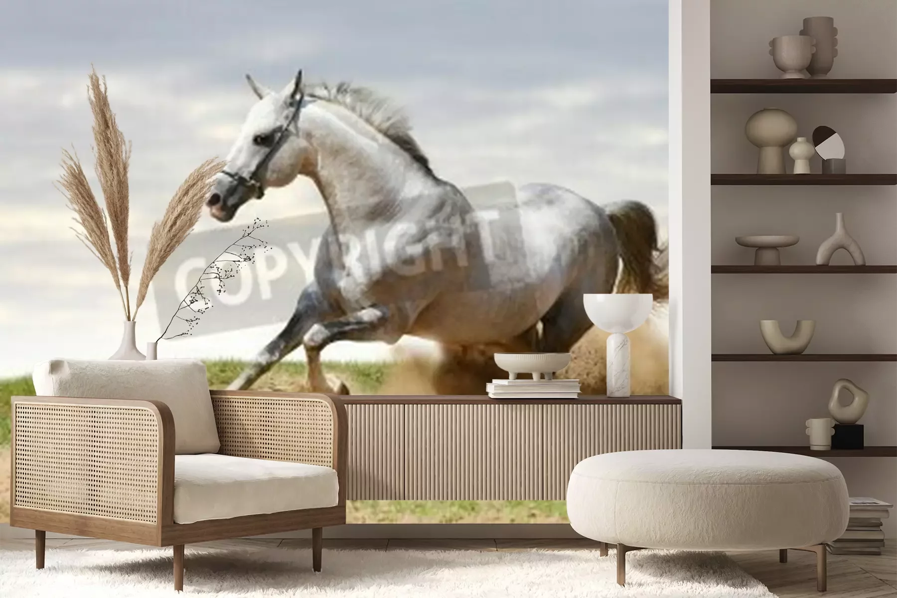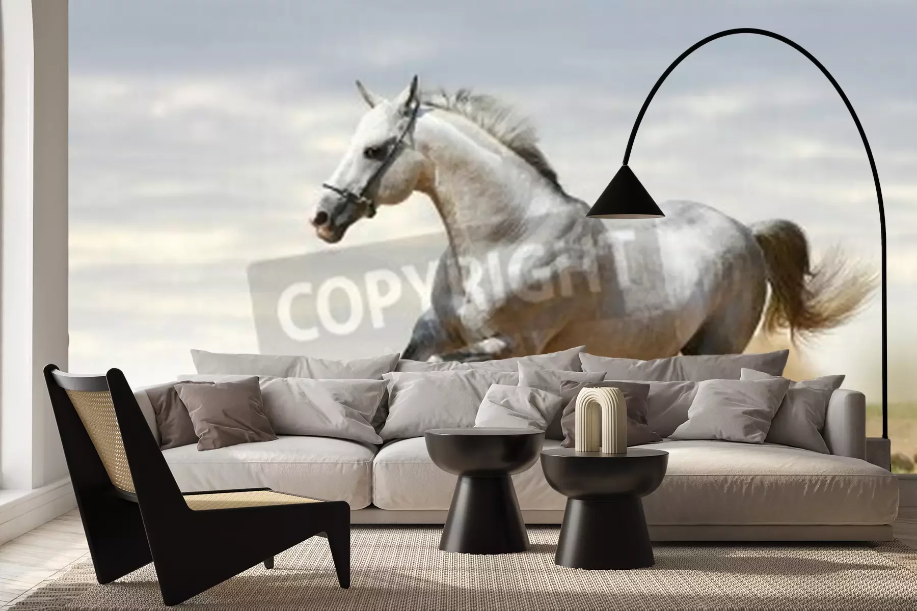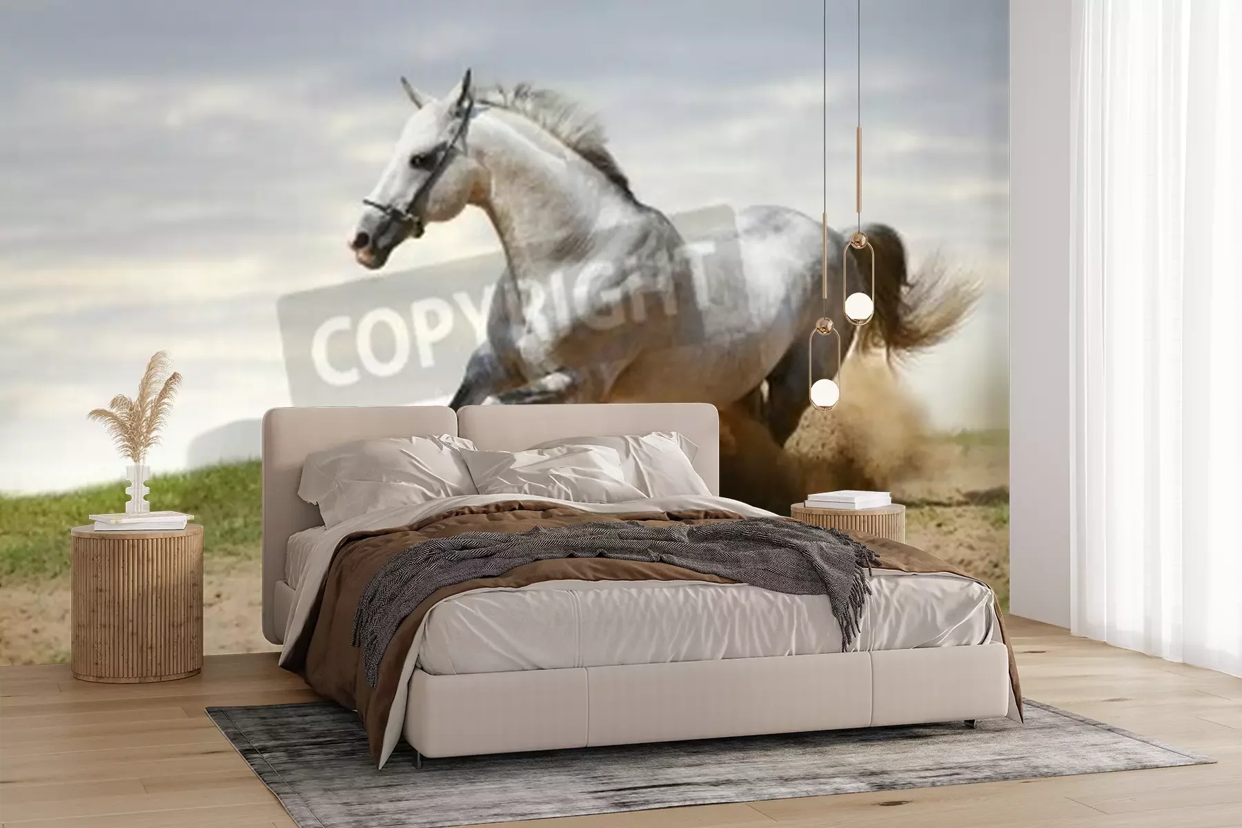 Fotobehang Paard rent op zand
