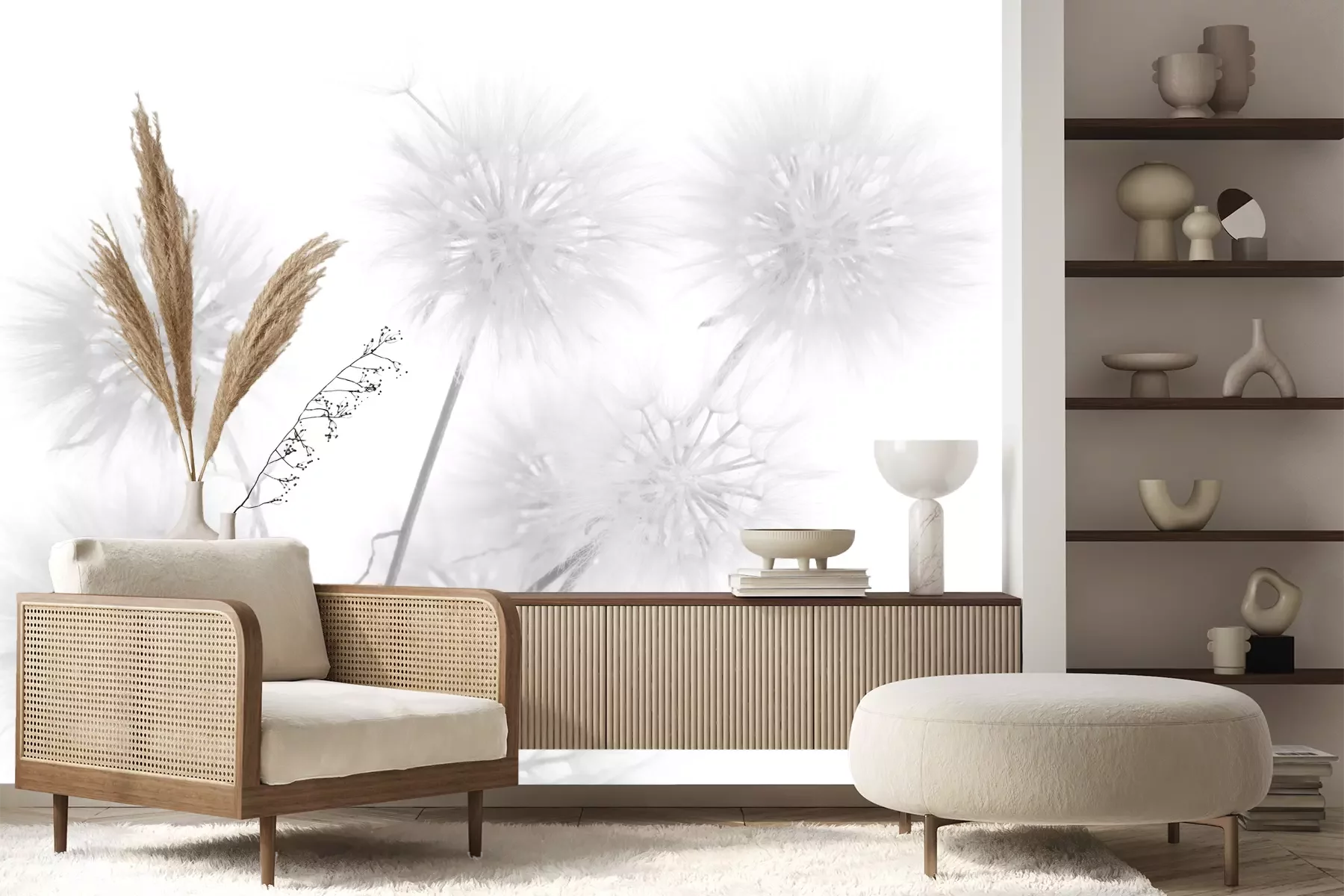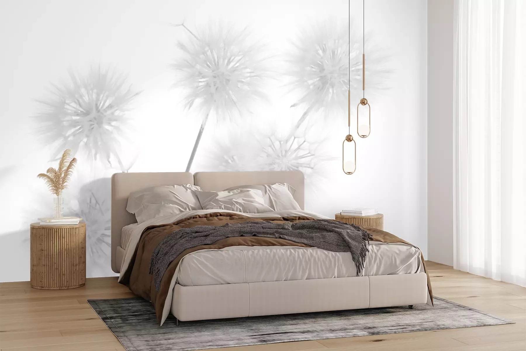 Het materiaal Premium+ is een gestructureerd vinyl op vlies met een gewicht van 255 g/m², dat kleine oneffenheden in de muur effectief camoufleert. De subtiele structuur van fijn zand geeft het oppervlak een exclusieve uitstraling, terwijl de halfmatte afwerking de diepte van de kleuren benadrukt. Het materiaal is dampdoorlatend, waardoor het ook in de keuken en badkamer kan worden gebruikt. De maximale breedte van één baan bedraagt 100 cm – bij grotere afmetingen wordt het fotobehang in meerdere gelijke banen verdeeld. De lijm wordt direct op de muur aangebracht en het behang wordt rand-aan-rand geplakt, wat zorgt voor een esthetisch resultaat zonder zichtbare naden. Het oppervlak kan gemakkelijk worden schoongemaakt door het voorzichtig af te nemen met een vochtige doek.