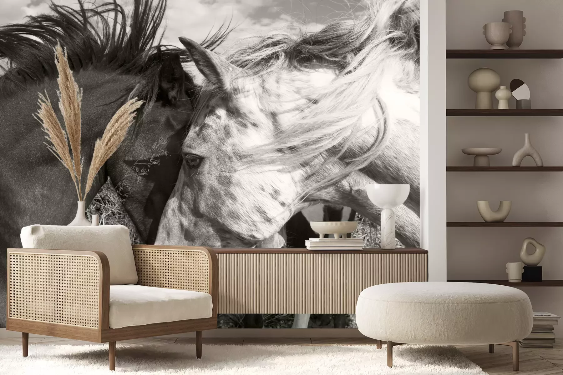 Het materiaal Premium+ is een gestructureerd vinyl op vlies met een gewicht van 255 g/m², dat kleine oneffenheden in de muur effectief camoufleert. De subtiele structuur van fijn zand geeft het oppervlak een exclusieve uitstraling, terwijl de halfmatte afwerking de diepte van de kleuren benadrukt. Het materiaal is dampdoorlatend, waardoor het ook in de keuken en badkamer kan worden gebruikt. De maximale breedte van één baan bedraagt 100 cm – bij grotere afmetingen wordt het fotobehang in meerdere gelijke banen verdeeld. De lijm wordt direct op de muur aangebracht en het behang wordt rand-aan-rand geplakt, wat zorgt voor een esthetisch resultaat zonder zichtbare naden. Het oppervlak kan gemakkelijk worden schoongemaakt door het voorzichtig af te nemen met een vochtige doek.