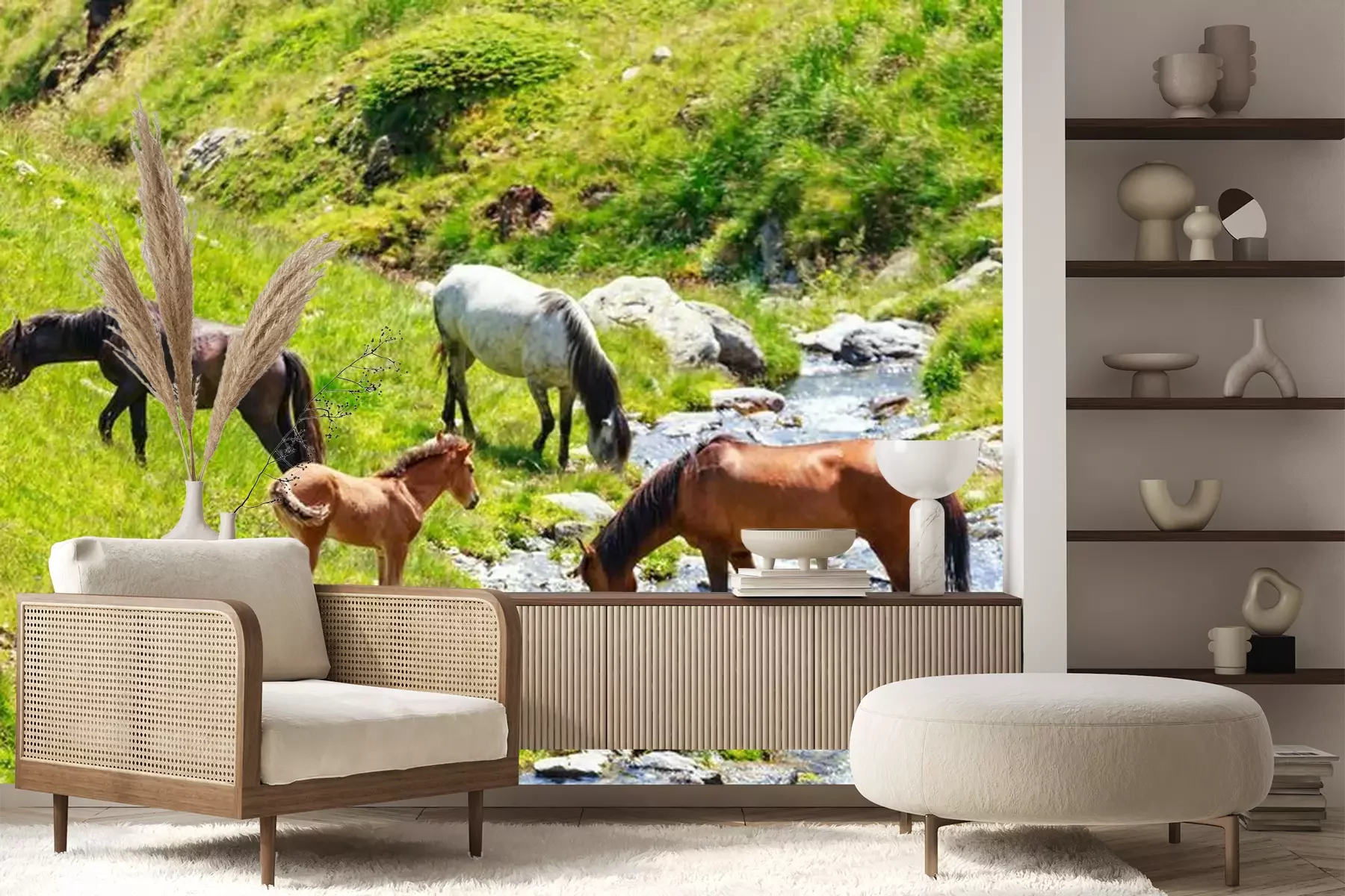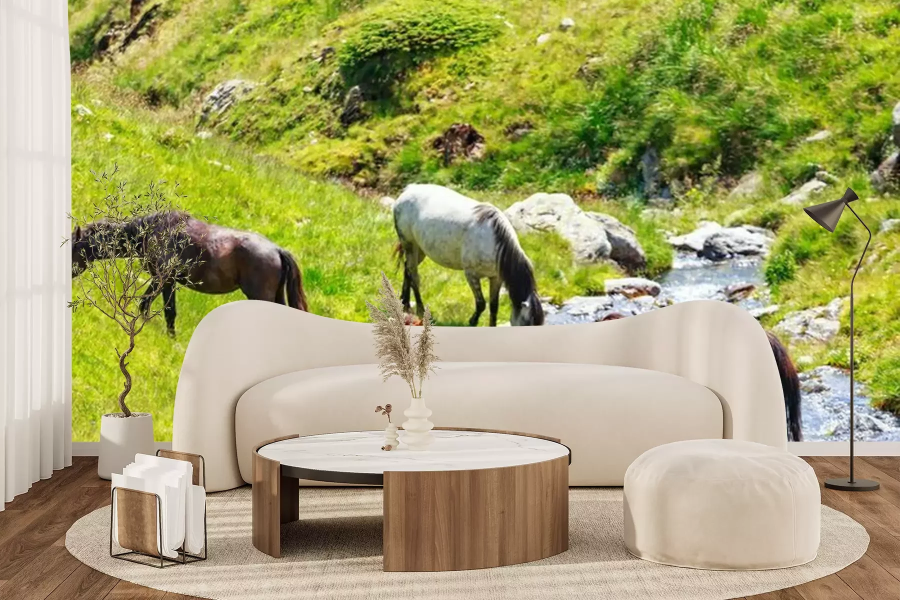 Het materiaal Premium+ is een gestructureerd vinyl op vlies met een gewicht van 255 g/m², dat kleine oneffenheden in de muur effectief camoufleert. De subtiele structuur van fijn zand geeft het oppervlak een exclusieve uitstraling, terwijl de halfmatte afwerking de diepte van de kleuren benadrukt. Het materiaal is dampdoorlatend, waardoor het ook in de keuken en badkamer kan worden gebruikt. De maximale breedte van één baan bedraagt 100 cm – bij grotere afmetingen wordt het fotobehang in meerdere gelijke banen verdeeld. De lijm wordt direct op de muur aangebracht en het behang wordt rand-aan-rand geplakt, wat zorgt voor een esthetisch resultaat zonder zichtbare naden. Het oppervlak kan gemakkelijk worden schoongemaakt door het voorzichtig af te nemen met een vochtige doek.