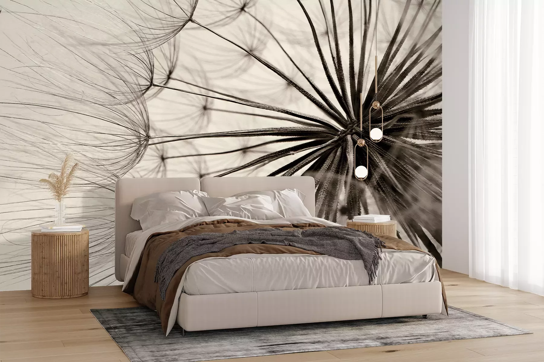 Het materiaal Premium+ is een gestructureerd vinyl op vlies met een gewicht van 255 g/m², dat kleine oneffenheden in de muur effectief camoufleert. De subtiele structuur van fijn zand geeft het oppervlak een exclusieve uitstraling, terwijl de halfmatte afwerking de diepte van de kleuren benadrukt. Het materiaal is dampdoorlatend, waardoor het ook in de keuken en badkamer kan worden gebruikt. De maximale breedte van één baan bedraagt 100 cm – bij grotere afmetingen wordt het fotobehang in meerdere gelijke banen verdeeld. De lijm wordt direct op de muur aangebracht en het behang wordt rand-aan-rand geplakt, wat zorgt voor een esthetisch resultaat zonder zichtbare naden. Het oppervlak kan gemakkelijk worden schoongemaakt door het voorzichtig af te nemen met een vochtige doek.