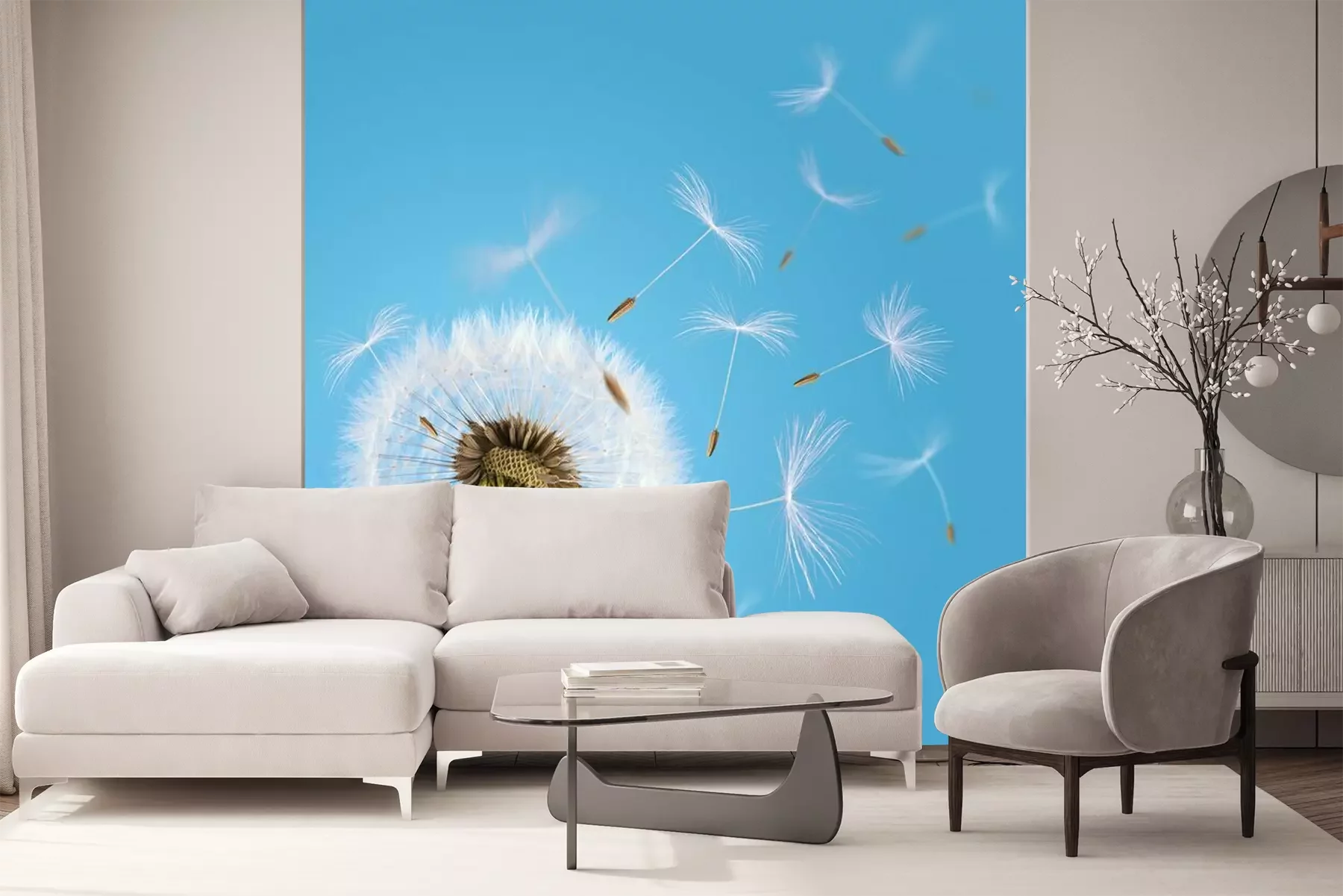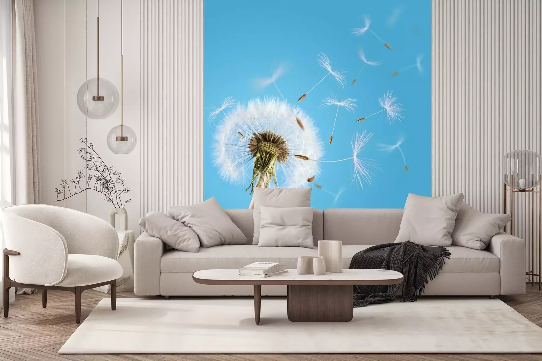 Fotobehang Paardenbloem en blauwe lucht