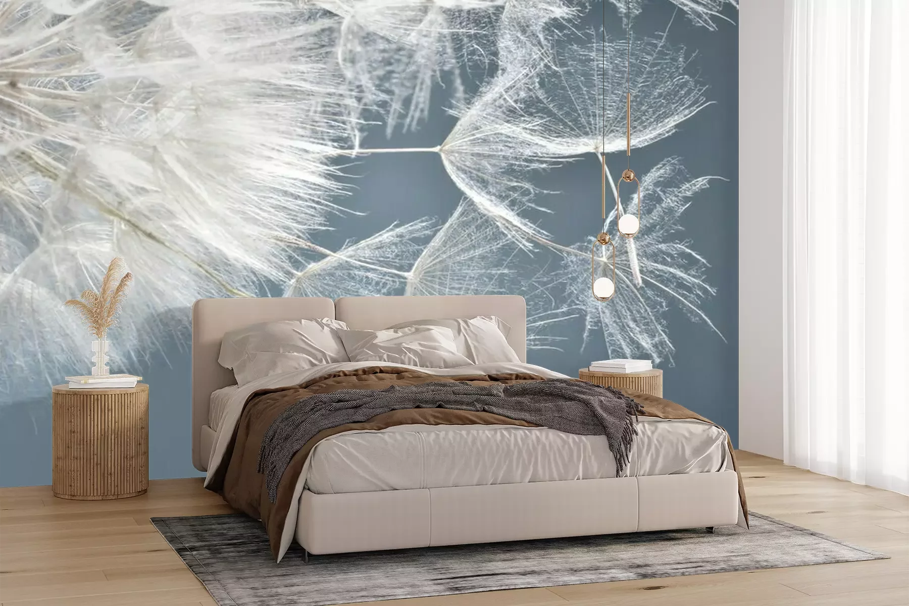 Het materiaal Premium+ is een gestructureerd vinyl op vlies met een gewicht van 255 g/m², dat kleine oneffenheden in de muur effectief camoufleert. De subtiele structuur van fijn zand geeft het oppervlak een exclusieve uitstraling, terwijl de halfmatte afwerking de diepte van de kleuren benadrukt. Het materiaal is dampdoorlatend, waardoor het ook in de keuken en badkamer kan worden gebruikt. De maximale breedte van één baan bedraagt 100 cm – bij grotere afmetingen wordt het fotobehang in meerdere gelijke banen verdeeld. De lijm wordt direct op de muur aangebracht en het behang wordt rand-aan-rand geplakt, wat zorgt voor een esthetisch resultaat zonder zichtbare naden. Het oppervlak kan gemakkelijk worden schoongemaakt door het voorzichtig af te nemen met een vochtige doek.