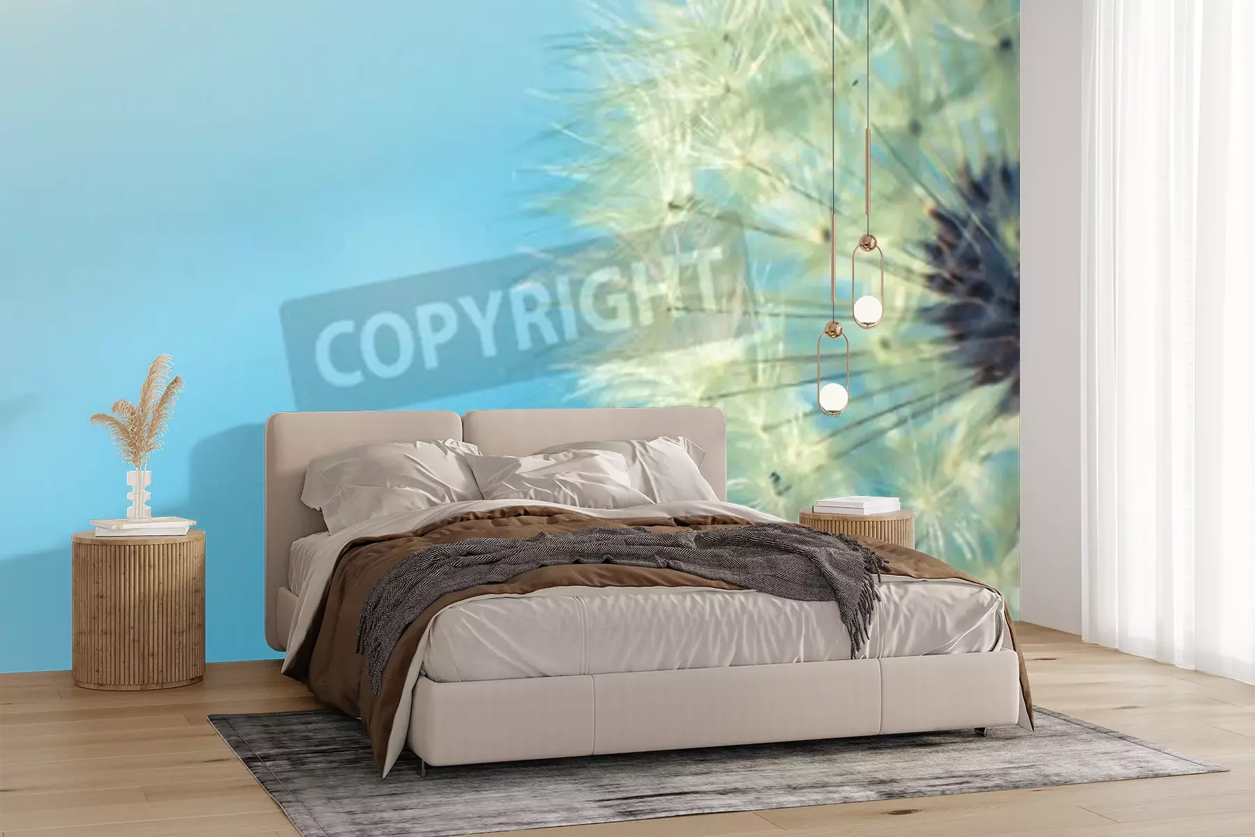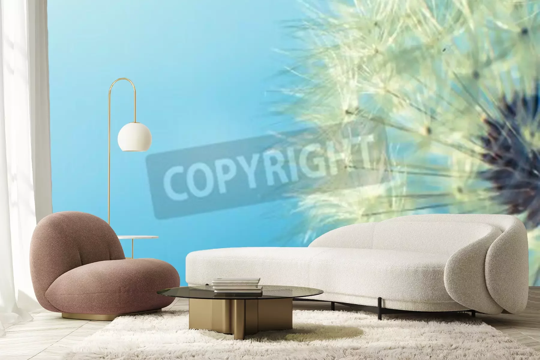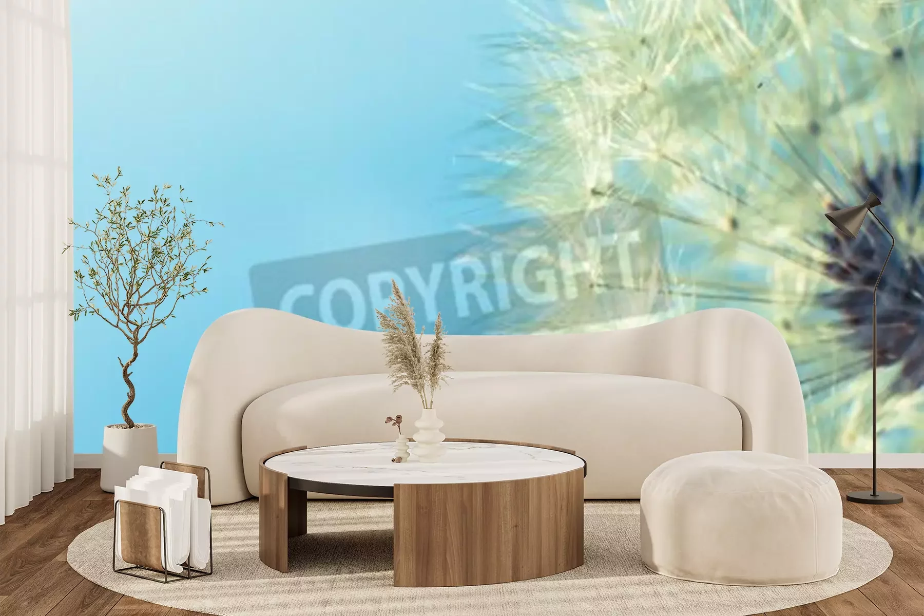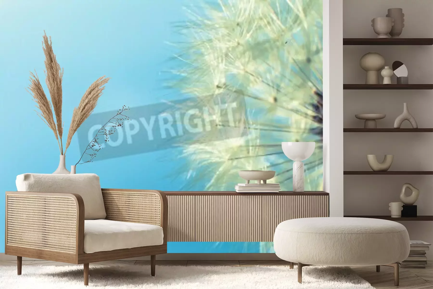 Fotobehang Paardenbloem op blauwe achtergrond