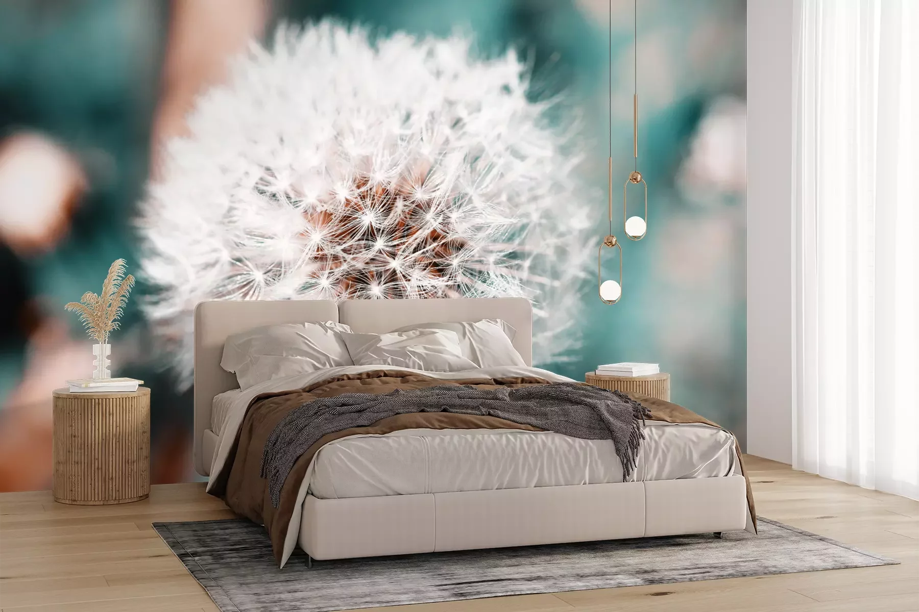 Het materiaal Premium+ is een gestructureerd vinyl op vlies met een gewicht van 255 g/m², dat kleine oneffenheden in de muur effectief camoufleert. De subtiele structuur van fijn zand geeft het oppervlak een exclusieve uitstraling, terwijl de halfmatte afwerking de diepte van de kleuren benadrukt. Het materiaal is dampdoorlatend, waardoor het ook in de keuken en badkamer kan worden gebruikt. De maximale breedte van één baan bedraagt 100 cm – bij grotere afmetingen wordt het fotobehang in meerdere gelijke banen verdeeld. De lijm wordt direct op de muur aangebracht en het behang wordt rand-aan-rand geplakt, wat zorgt voor een esthetisch resultaat zonder zichtbare naden. Het oppervlak kan gemakkelijk worden schoongemaakt door het voorzichtig af te nemen met een vochtige doek.