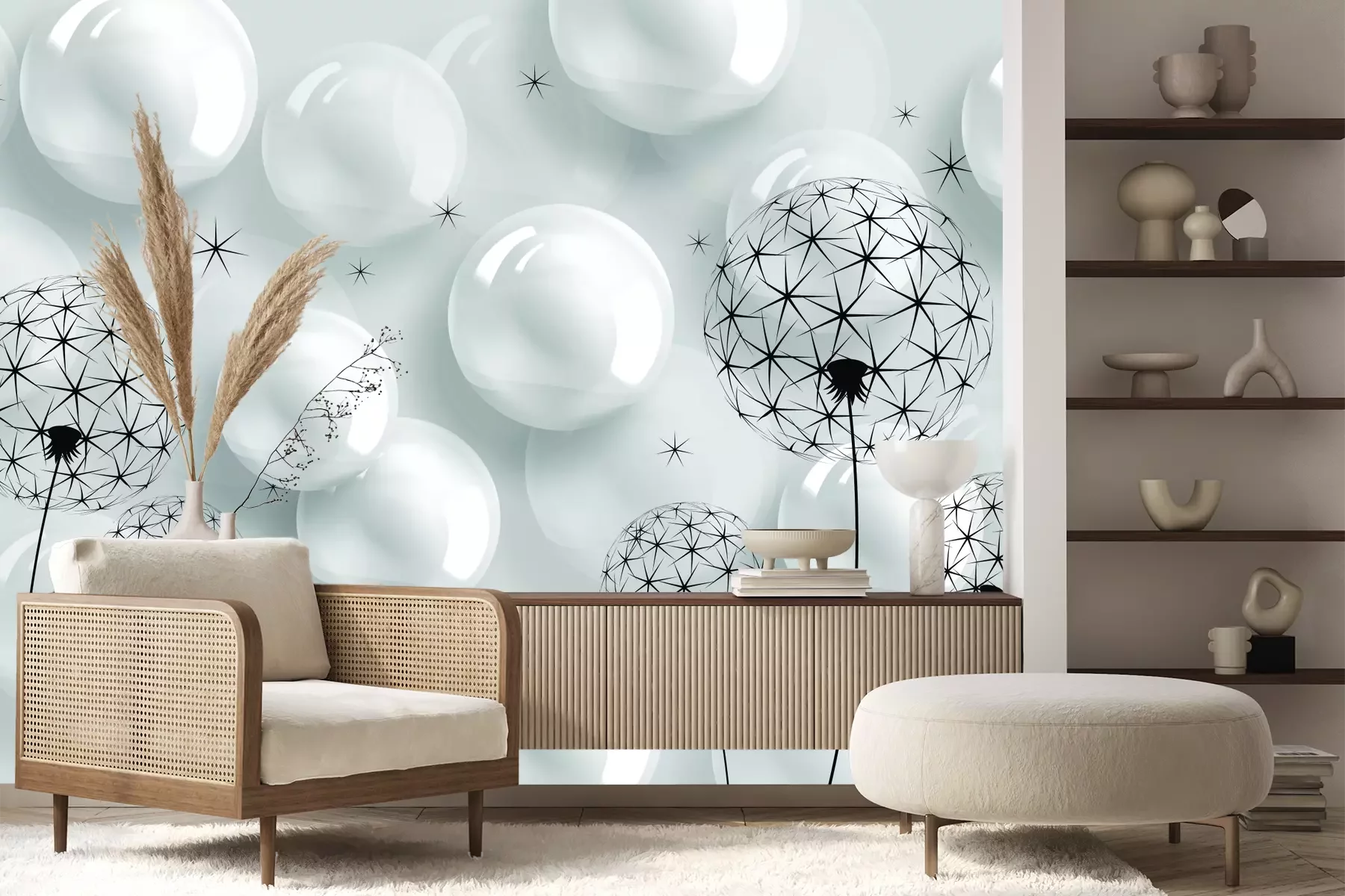 Het materiaal Premium+ is een gestructureerd vinyl op vlies met een gewicht van 255 g/m², dat kleine oneffenheden in de muur effectief camoufleert. De subtiele structuur van fijn zand geeft het oppervlak een exclusieve uitstraling, terwijl de halfmatte afwerking de diepte van de kleuren benadrukt. Het materiaal is dampdoorlatend, waardoor het ook in de keuken en badkamer kan worden gebruikt. De maximale breedte van één baan bedraagt 100 cm – bij grotere afmetingen wordt het fotobehang in meerdere gelijke banen verdeeld. De lijm wordt direct op de muur aangebracht en het behang wordt rand-aan-rand geplakt, wat zorgt voor een esthetisch resultaat zonder zichtbare naden. Het oppervlak kan gemakkelijk worden schoongemaakt door het voorzichtig af te nemen met een vochtige doek.