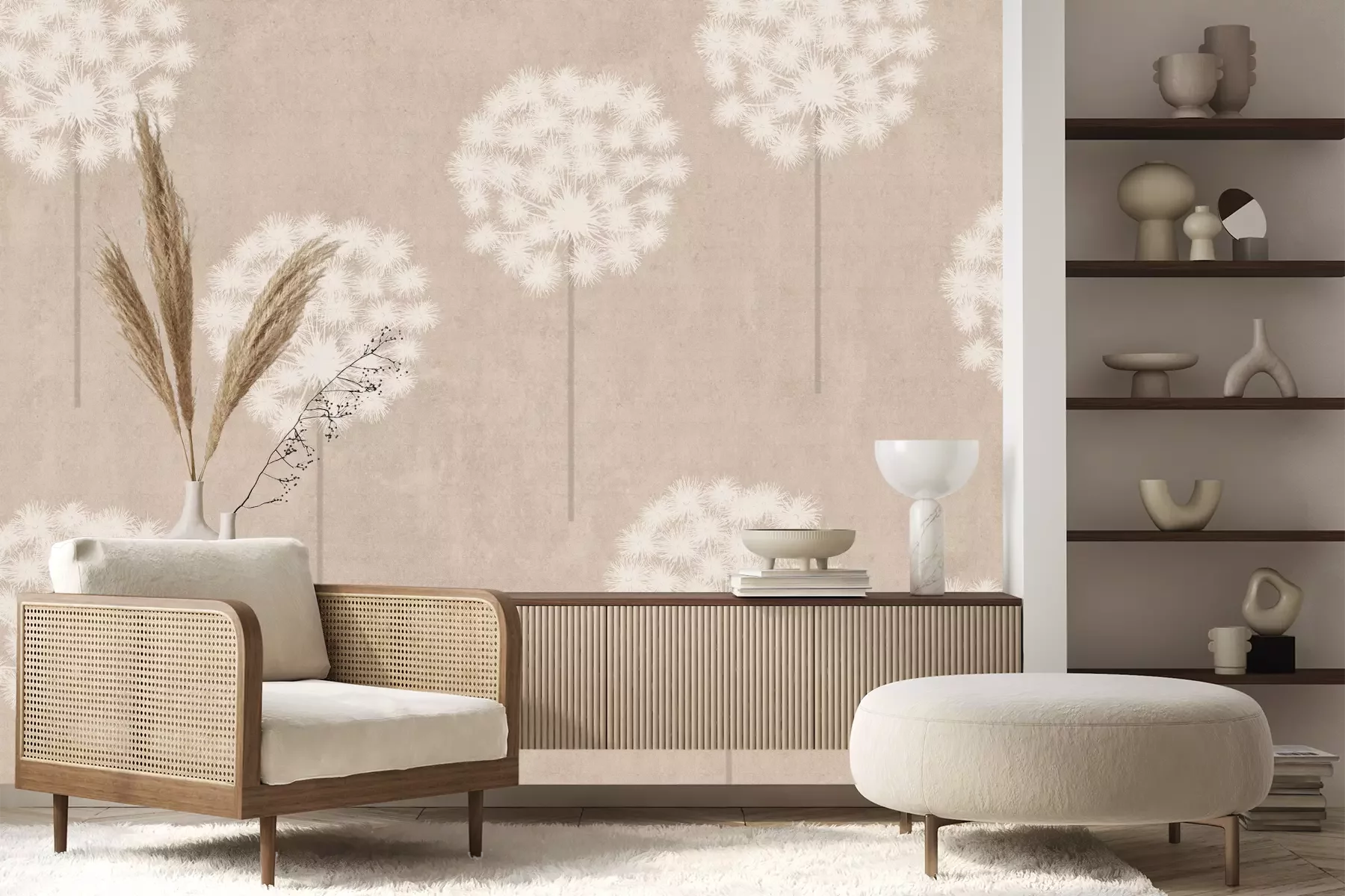 Het materiaal Premium+ is een gestructureerd vinyl op vlies met een gewicht van 255 g/m², dat kleine oneffenheden in de muur effectief camoufleert. De subtiele structuur van fijn zand geeft het oppervlak een exclusieve uitstraling, terwijl de halfmatte afwerking de diepte van de kleuren benadrukt. Het materiaal is dampdoorlatend, waardoor het ook in de keuken en badkamer kan worden gebruikt. De maximale breedte van één baan bedraagt 100 cm – bij grotere afmetingen wordt het fotobehang in meerdere gelijke banen verdeeld. De lijm wordt direct op de muur aangebracht en het behang wordt rand-aan-rand geplakt, wat zorgt voor een esthetisch resultaat zonder zichtbare naden. Het oppervlak kan gemakkelijk worden schoongemaakt door het voorzichtig af te nemen met een vochtige doek.