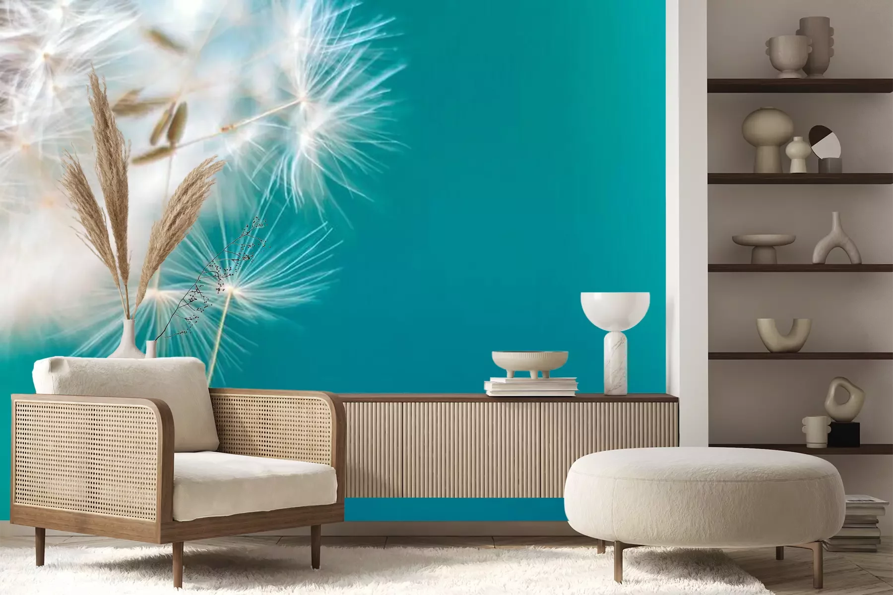 Het materiaal Premium+ is een gestructureerd vinyl op vlies met een gewicht van 255 g/m², dat kleine oneffenheden in de muur effectief camoufleert. De subtiele structuur van fijn zand geeft het oppervlak een exclusieve uitstraling, terwijl de halfmatte afwerking de diepte van de kleuren benadrukt. Het materiaal is dampdoorlatend, waardoor het ook in de keuken en badkamer kan worden gebruikt. De maximale breedte van één baan bedraagt 100 cm – bij grotere afmetingen wordt het fotobehang in meerdere gelijke banen verdeeld. De lijm wordt direct op de muur aangebracht en het behang wordt rand-aan-rand geplakt, wat zorgt voor een esthetisch resultaat zonder zichtbare naden. Het oppervlak kan gemakkelijk worden schoongemaakt door het voorzichtig af te nemen met een vochtige doek.