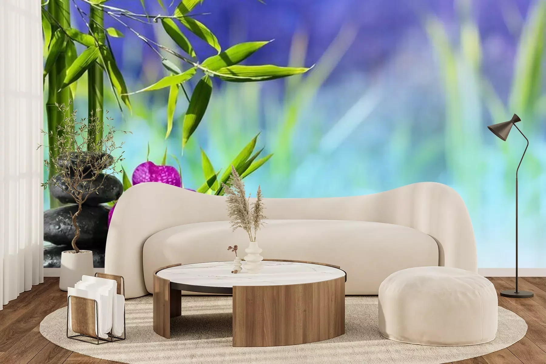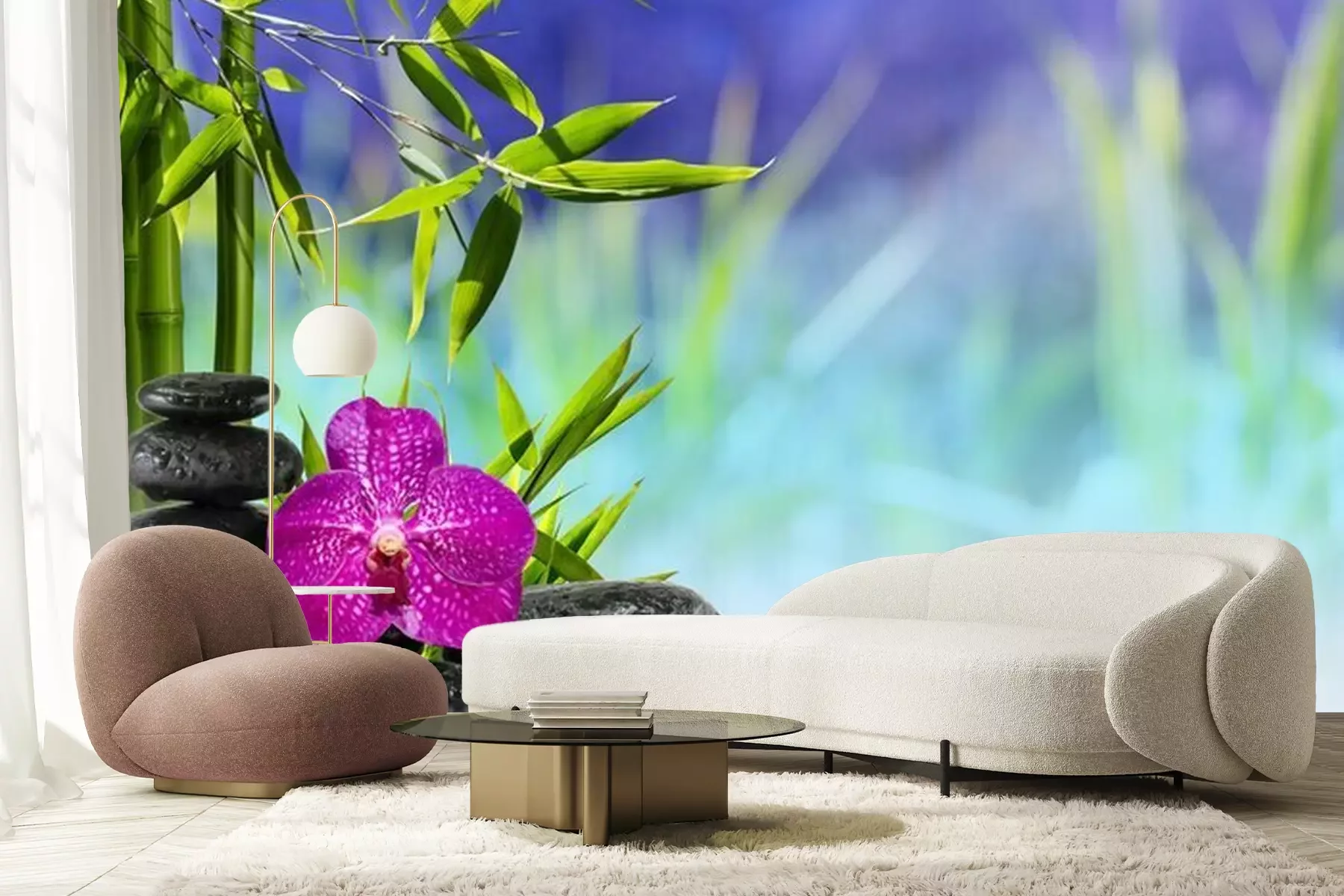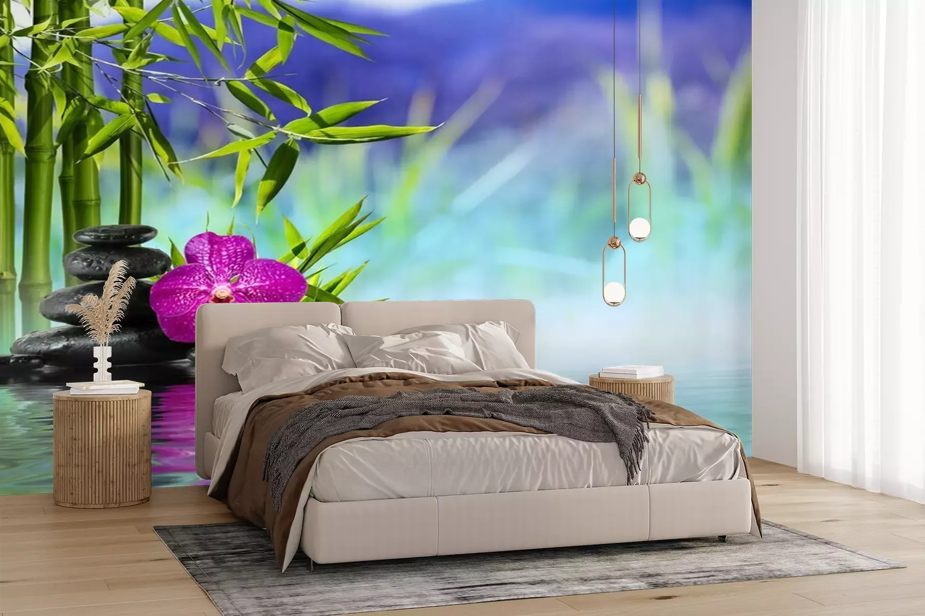 Orchidee samenstelling van stenen en bamboeFotobehang