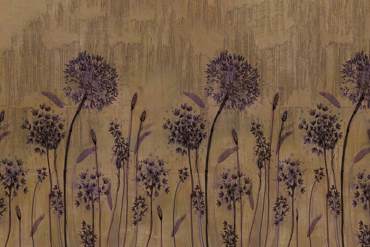 Fotobehang: Paarse paardenbloembloemen op de muur