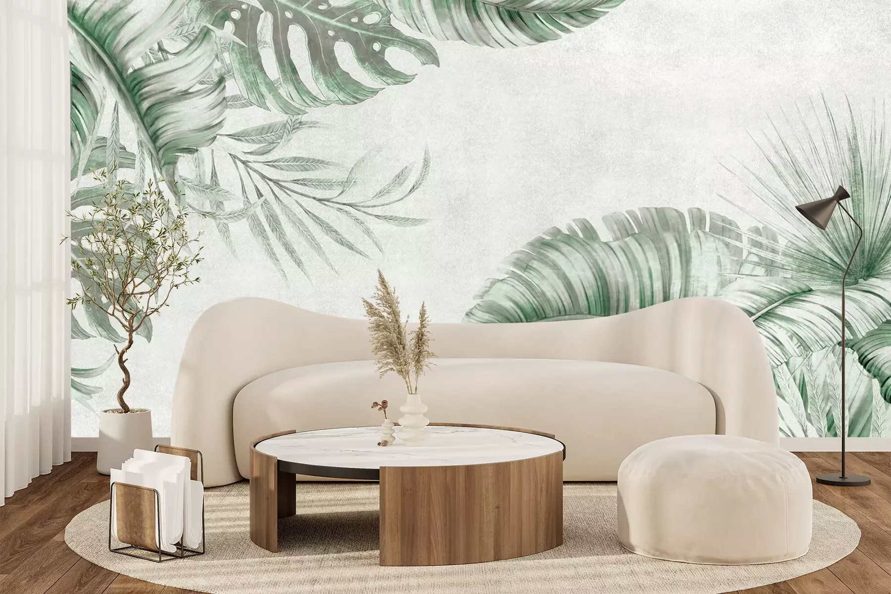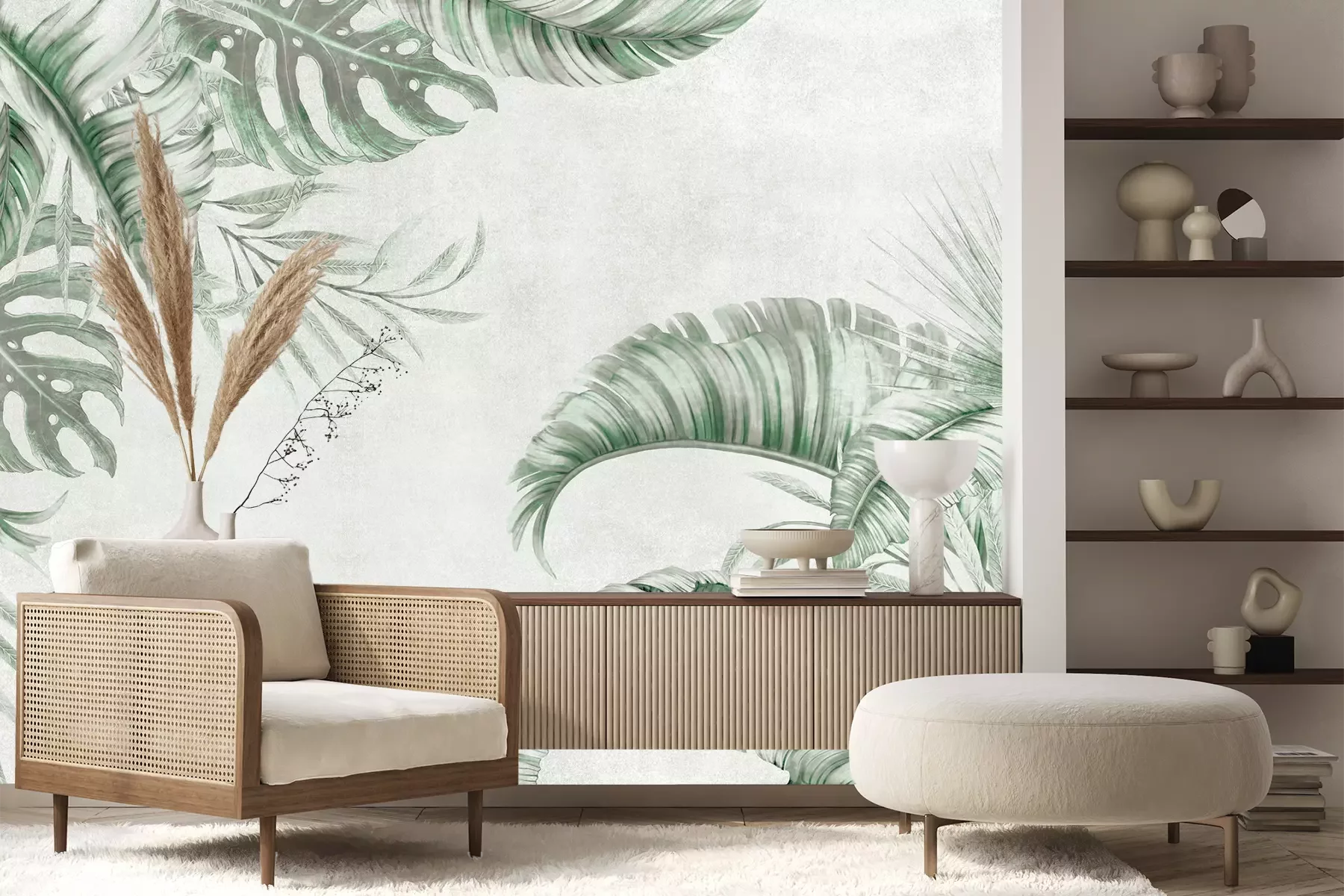 Het materiaal Premium+ is een gestructureerd vinyl op vlies met een gewicht van 255 g/m², dat kleine oneffenheden in de muur effectief camoufleert. De subtiele structuur van fijn zand geeft het oppervlak een exclusieve uitstraling, terwijl de halfmatte afwerking de diepte van de kleuren benadrukt. Het materiaal is dampdoorlatend, waardoor het ook in de keuken en badkamer kan worden gebruikt. De maximale breedte van één baan bedraagt 100 cm – bij grotere afmetingen wordt het fotobehang in meerdere gelijke banen verdeeld. De lijm wordt direct op de muur aangebracht en het behang wordt rand-aan-rand geplakt, wat zorgt voor een esthetisch resultaat zonder zichtbare naden. Het oppervlak kan gemakkelijk worden schoongemaakt door het voorzichtig af te nemen met een vochtige doek.