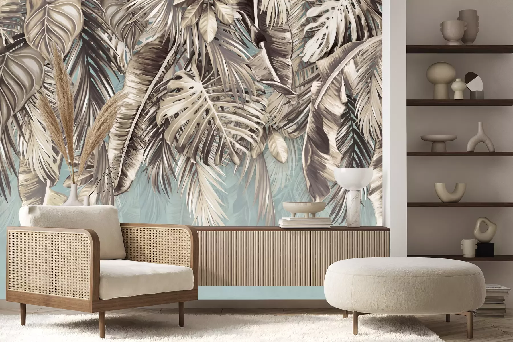 Het materiaal Premium+ is een gestructureerd vinyl op vlies met een gewicht van 255 g/m², dat kleine oneffenheden in de muur effectief camoufleert. De subtiele structuur van fijn zand geeft het oppervlak een exclusieve uitstraling, terwijl de halfmatte afwerking de diepte van de kleuren benadrukt. Het materiaal is dampdoorlatend, waardoor het ook in de keuken en badkamer kan worden gebruikt. De maximale breedte van één baan bedraagt 100 cm – bij grotere afmetingen wordt het fotobehang in meerdere gelijke banen verdeeld. De lijm wordt direct op de muur aangebracht en het behang wordt rand-aan-rand geplakt, wat zorgt voor een esthetisch resultaat zonder zichtbare naden. Het oppervlak kan gemakkelijk worden schoongemaakt door het voorzichtig af te nemen met een vochtige doek.