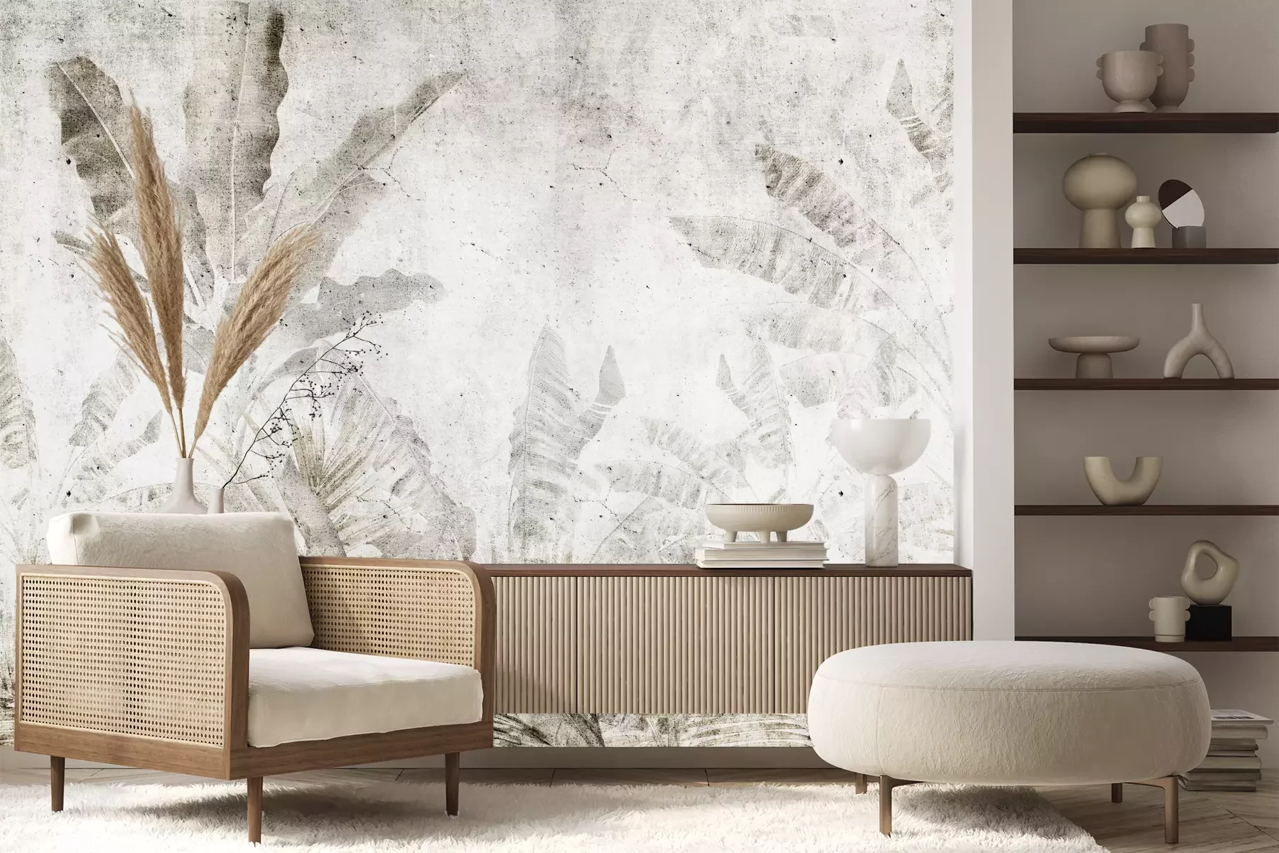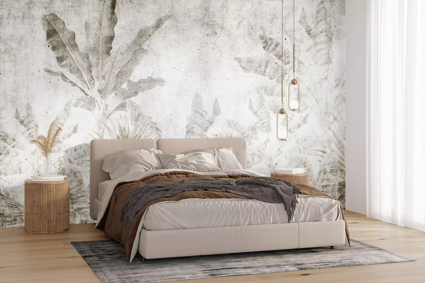 Het materiaal Premium+ is een gestructureerd vinyl op vlies met een gewicht van 255 g/m², dat kleine oneffenheden in de muur effectief camoufleert. De subtiele structuur van fijn zand geeft het oppervlak een exclusieve uitstraling, terwijl de halfmatte afwerking de diepte van de kleuren benadrukt. Het materiaal is dampdoorlatend, waardoor het ook in de keuken en badkamer kan worden gebruikt. De maximale breedte van één baan bedraagt 100 cm – bij grotere afmetingen wordt het fotobehang in meerdere gelijke banen verdeeld. De lijm wordt direct op de muur aangebracht en het behang wordt rand-aan-rand geplakt, wat zorgt voor een esthetisch resultaat zonder zichtbare naden. Het oppervlak kan gemakkelijk worden schoongemaakt door het voorzichtig af te nemen met een vochtige doek.
