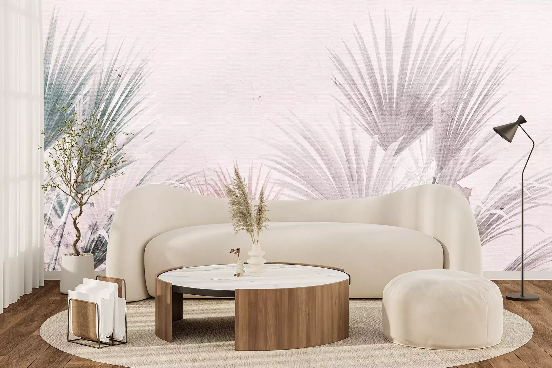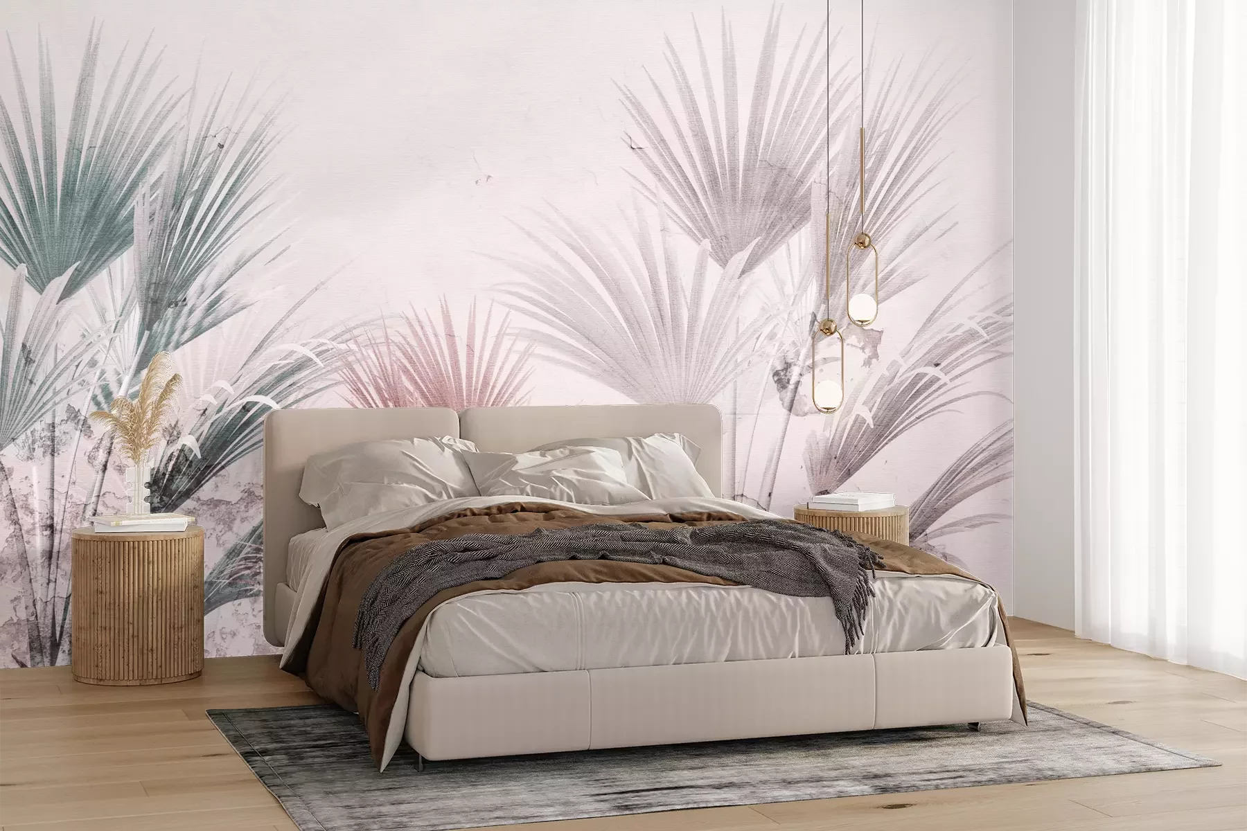 Het materiaal Premium+ is een gestructureerd vinyl op vlies met een gewicht van 255 g/m², dat kleine oneffenheden in de muur effectief camoufleert. De subtiele structuur van fijn zand geeft het oppervlak een exclusieve uitstraling, terwijl de halfmatte afwerking de diepte van de kleuren benadrukt. Het materiaal is dampdoorlatend, waardoor het ook in de keuken en badkamer kan worden gebruikt. De maximale breedte van één baan bedraagt 100 cm – bij grotere afmetingen wordt het fotobehang in meerdere gelijke banen verdeeld. De lijm wordt direct op de muur aangebracht en het behang wordt rand-aan-rand geplakt, wat zorgt voor een esthetisch resultaat zonder zichtbare naden. Het oppervlak kan gemakkelijk worden schoongemaakt door het voorzichtig af te nemen met een vochtige doek.