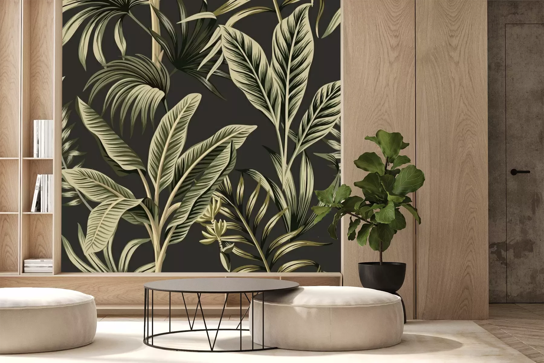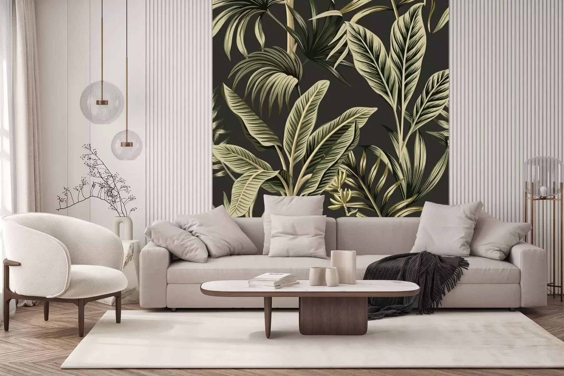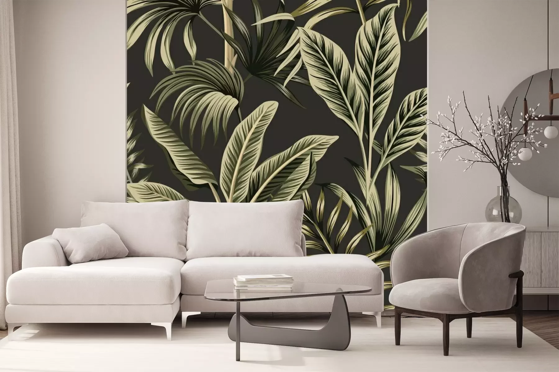 Fotobehang Palmbladeren op grijsachtige achtergrond