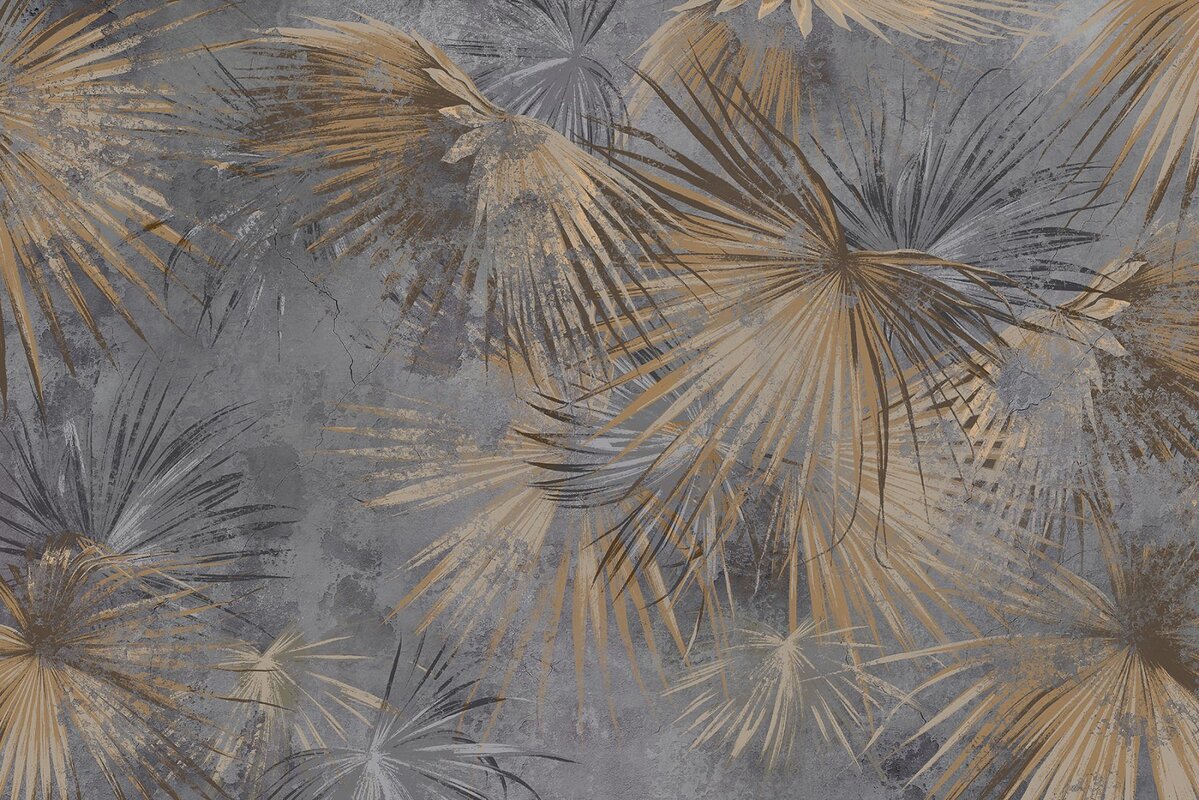 Fotobehang: Palmbladeren tegen de achtergrond van een betonnen constructie